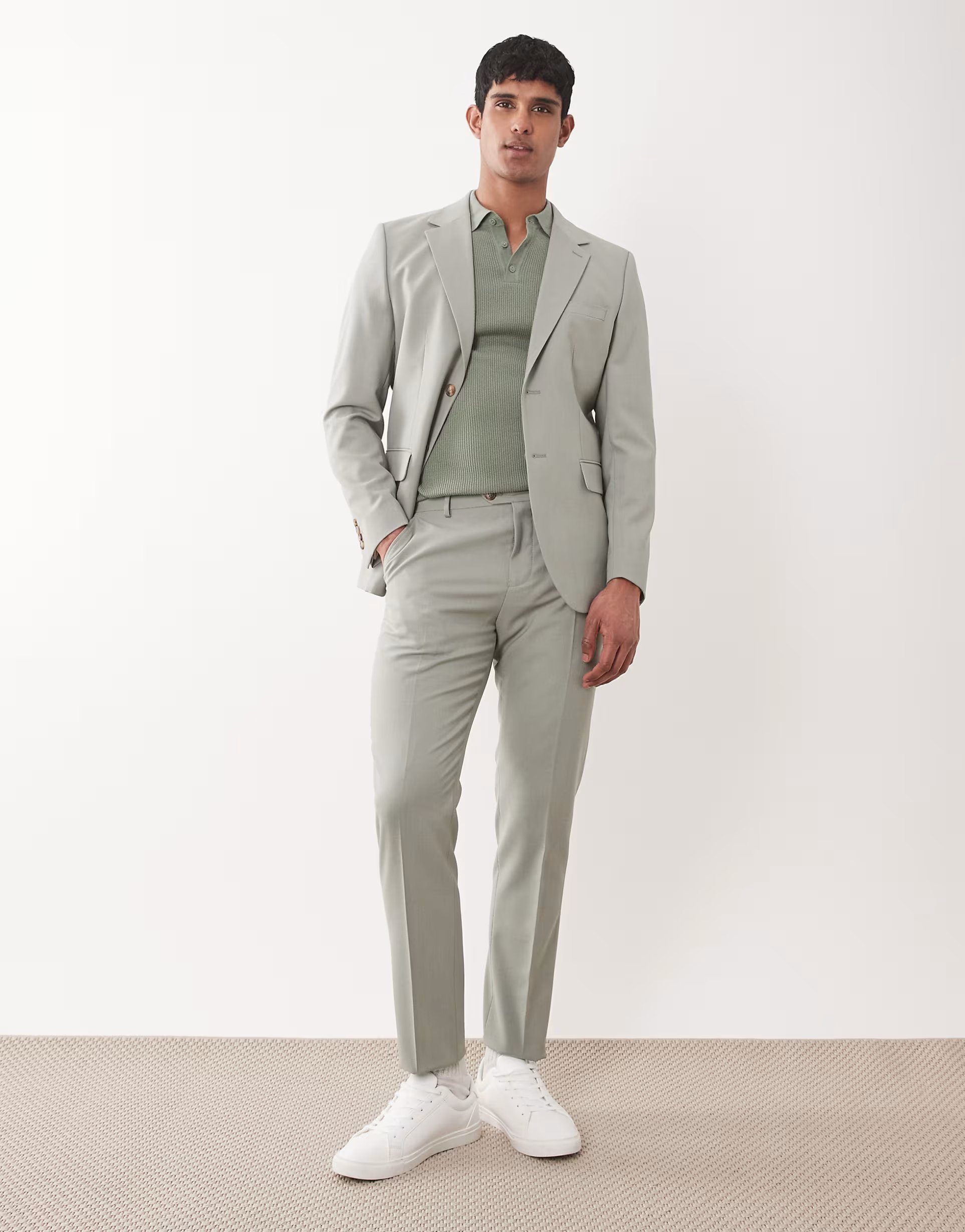 The ASOS Selected Slim Fit Suit Trousers in Light Green is available in sizes XXXL, XXL, XL, XS, L, M, S.