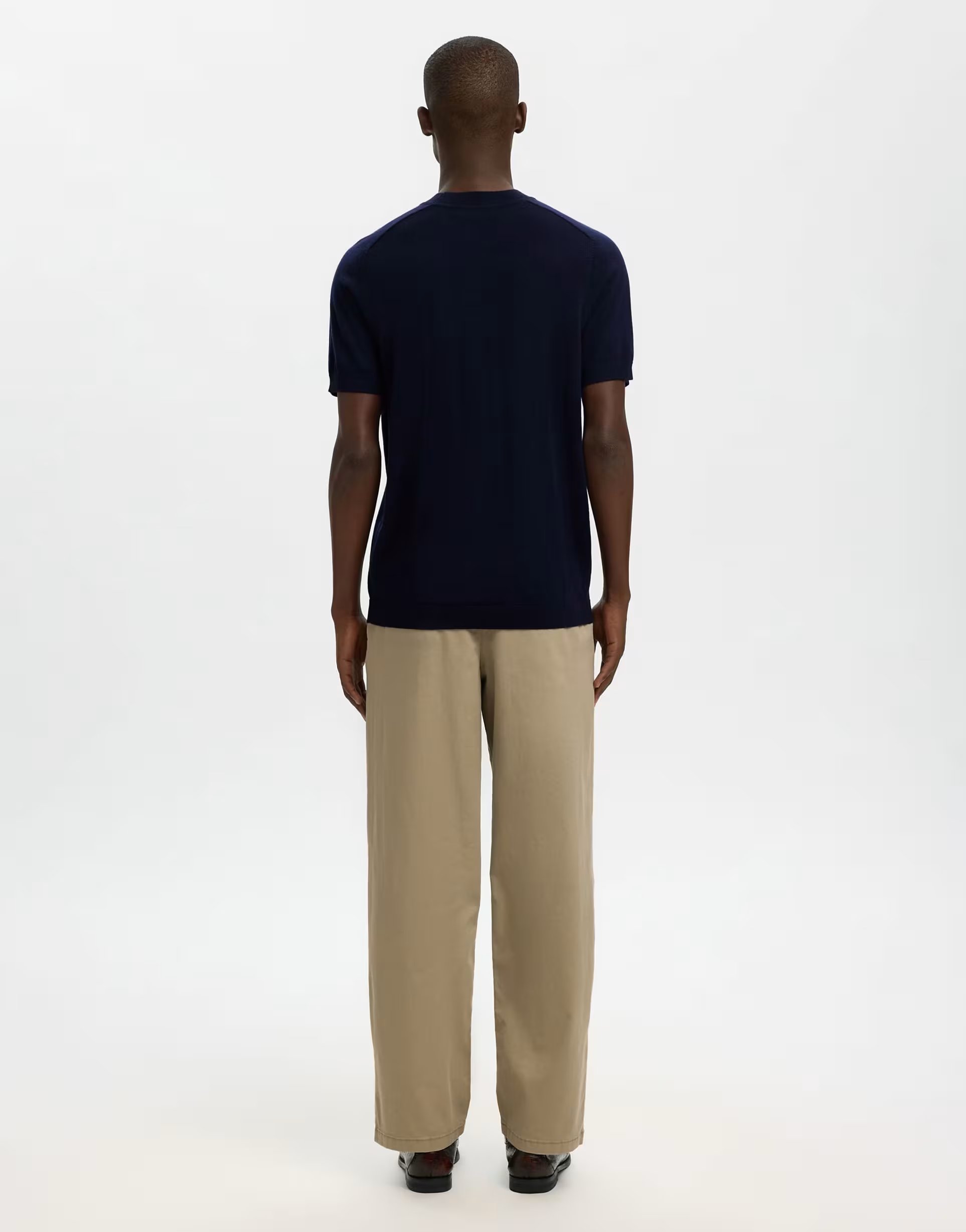 Crafted from soft, breathable fabric, this navy blazer jumper from Selected features a crew neck and short sleeves. Ideal for layering over a shirt or wearing on its own, it's perfect for casual outings.