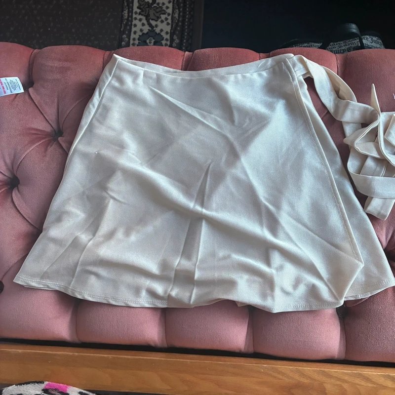 The ASOS Silk Ballet Wrap Skirt in Beige is made from silk.