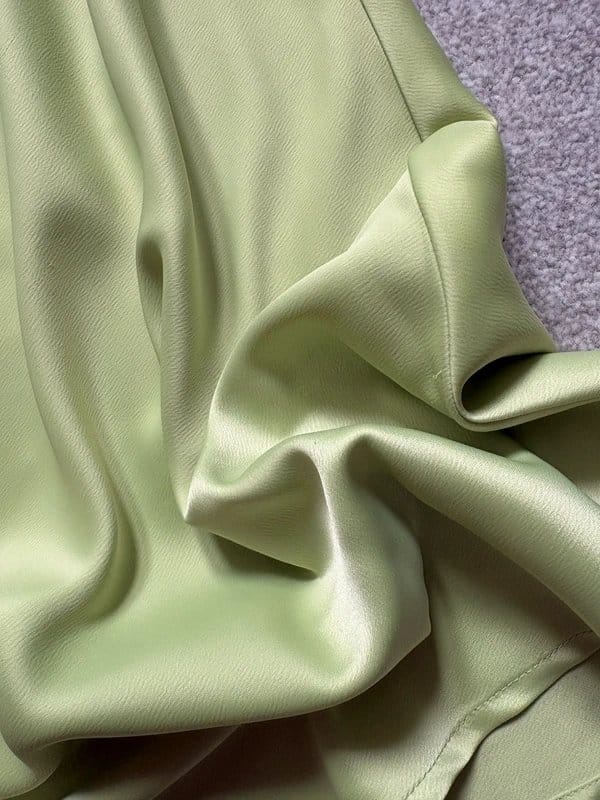 “Pair with a white silk blouse and mint green heels for a cohesive look.”
