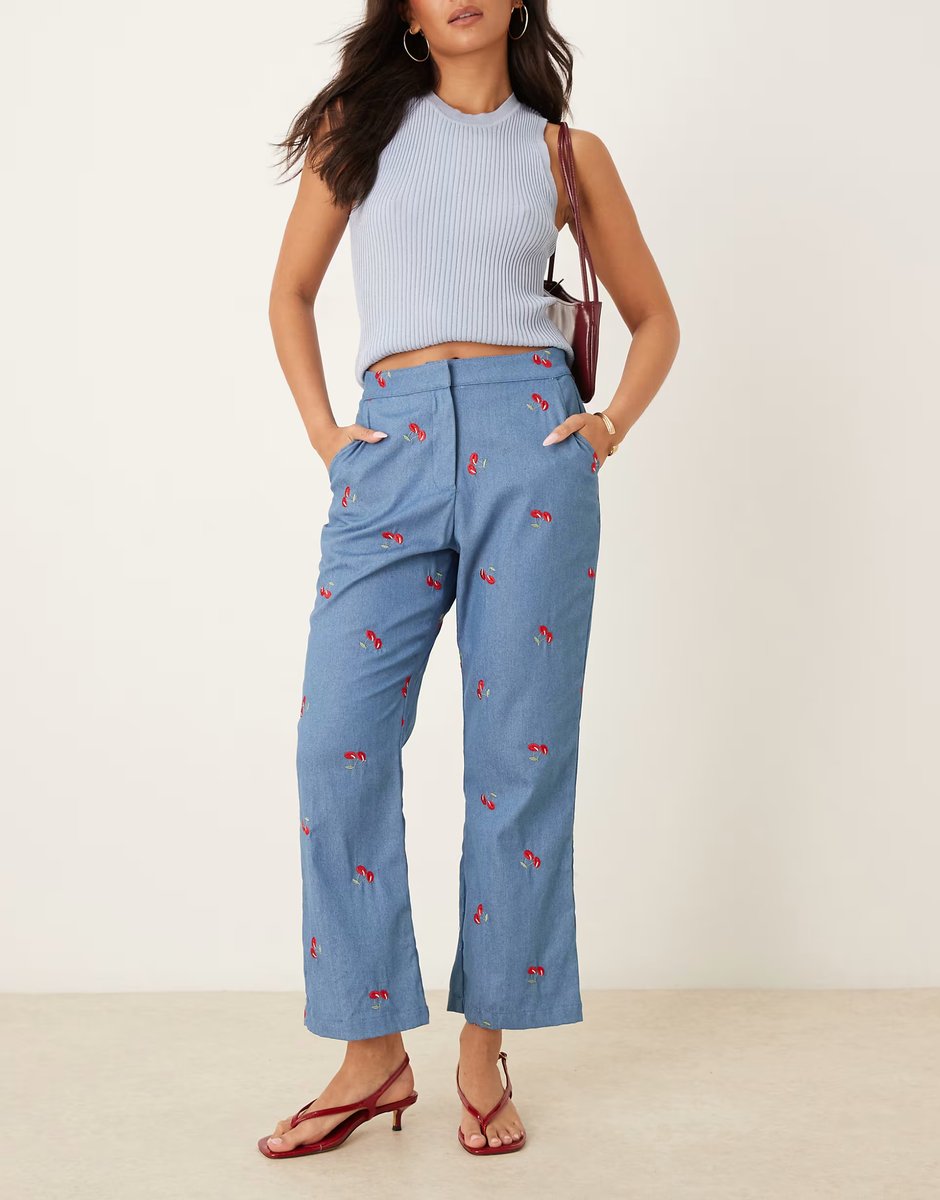 The ASOS Cherry Embellished High Waisted Flare Jeans in Denim Blue is ideal for casual, weekend.