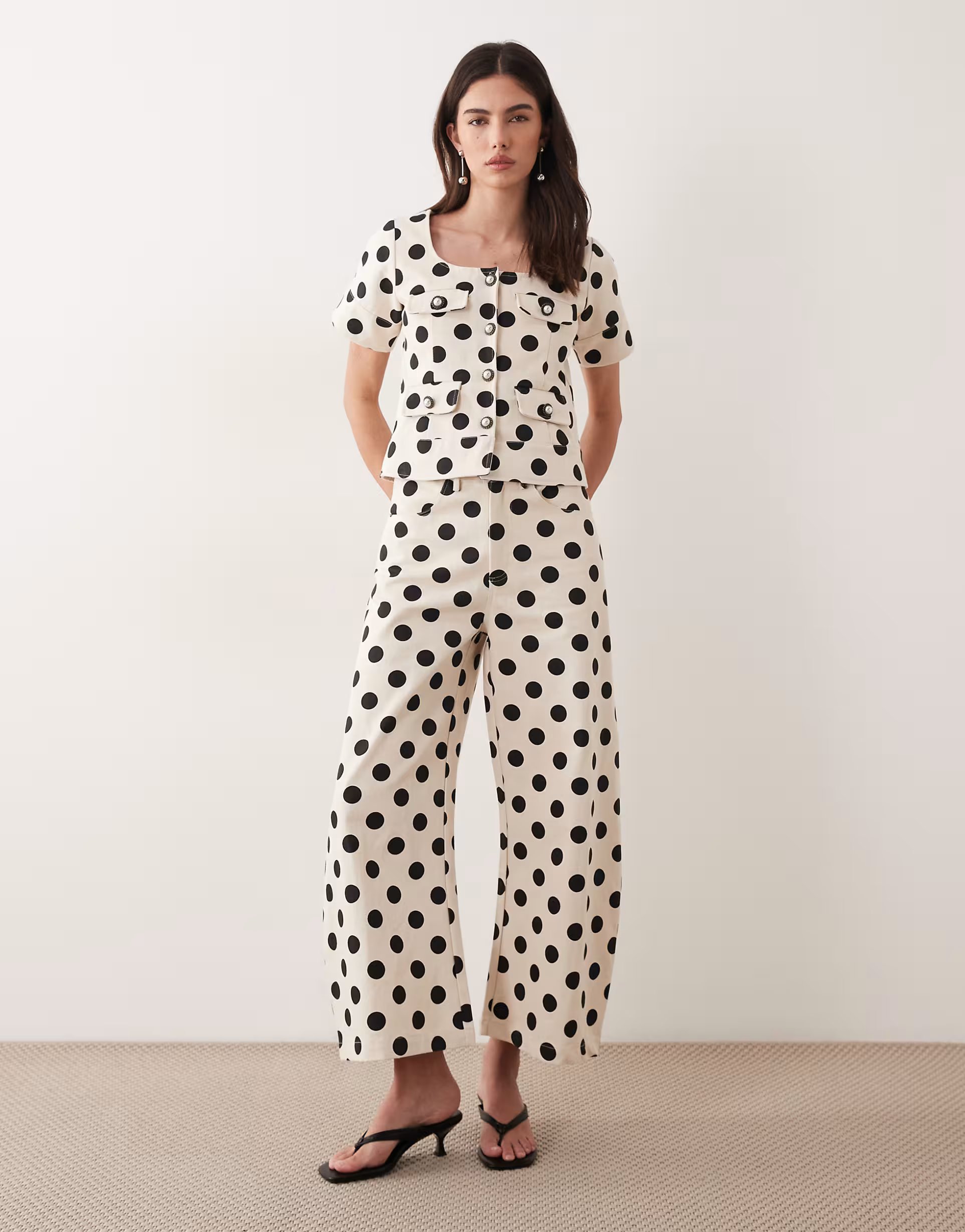 The ASOS Sister Jane Polka Dot Barrel Denim Co-ord in Ivory is ideal for casual.