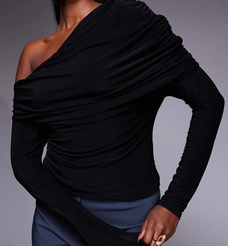 Back to ASOS Black Ruched Off-Shoulder Long Sleeve Top →
