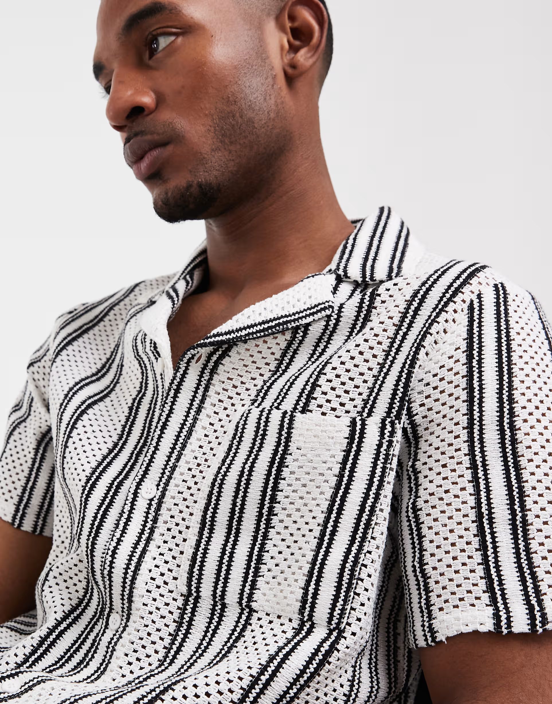 The ASOS South Beach Crochet Shirt in Black Stripe is made from crochet.