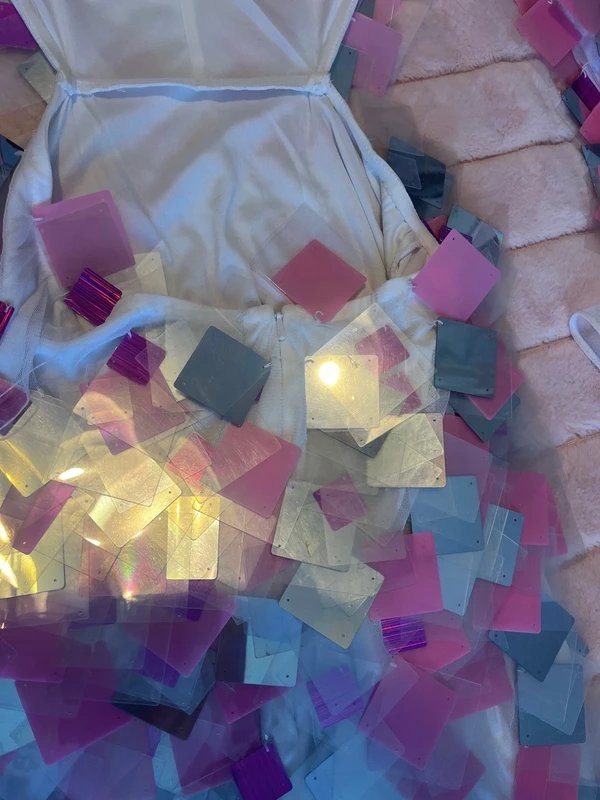 The ASOS Luxe Pink Embellished Mini Dress with Sequins is made from sequins, tulle.