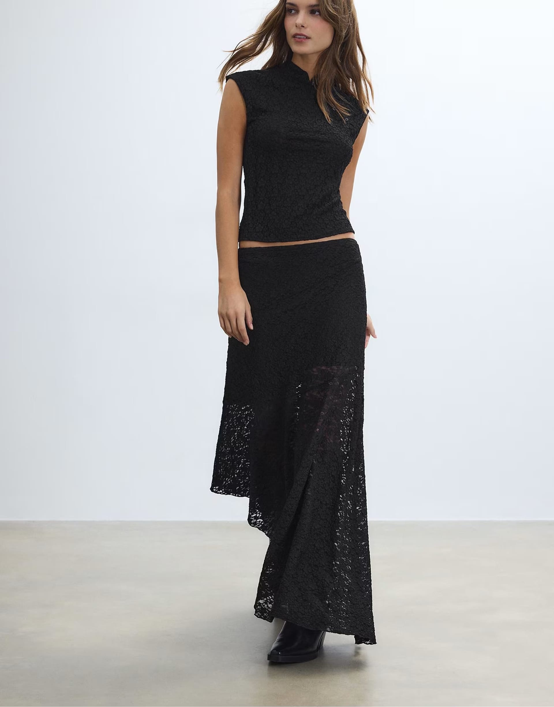 Back to ASOS Black Lace Asymmetric Midi Skirt Set →