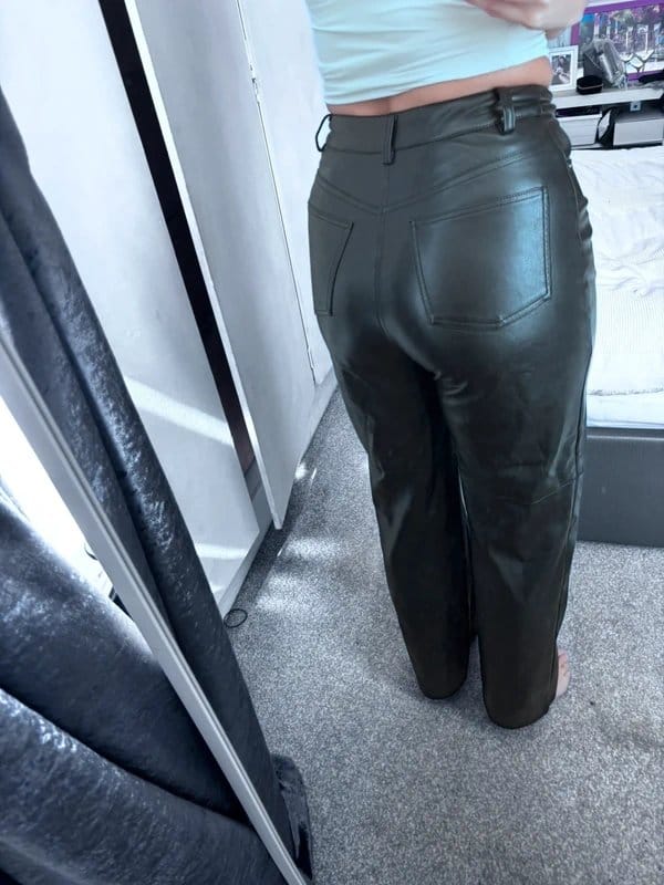 The ASOS Black Leather Straight Leg Trousers is available in sizes S.