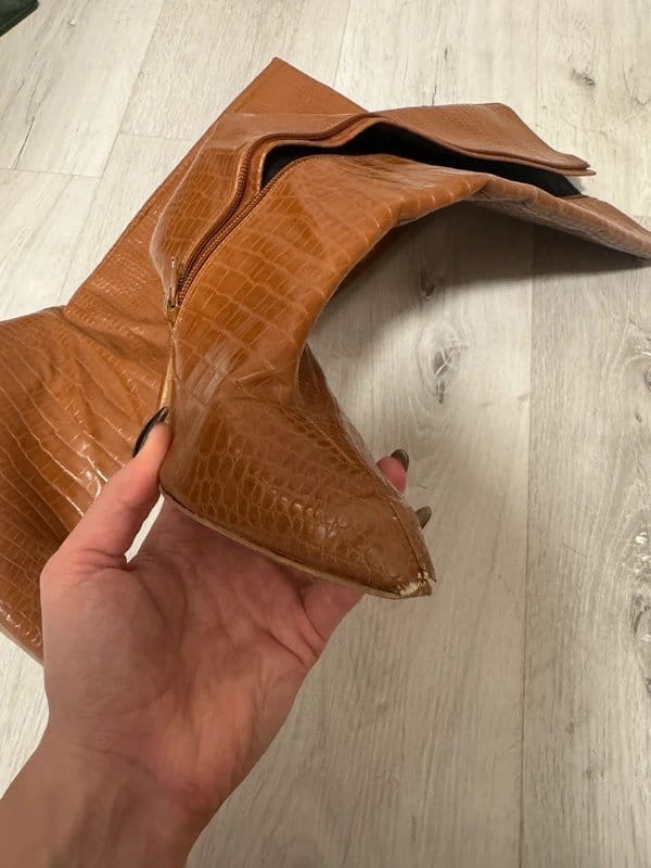 The ASOS Croc-Effect Knee High Heeled Boots is made from faux leather.