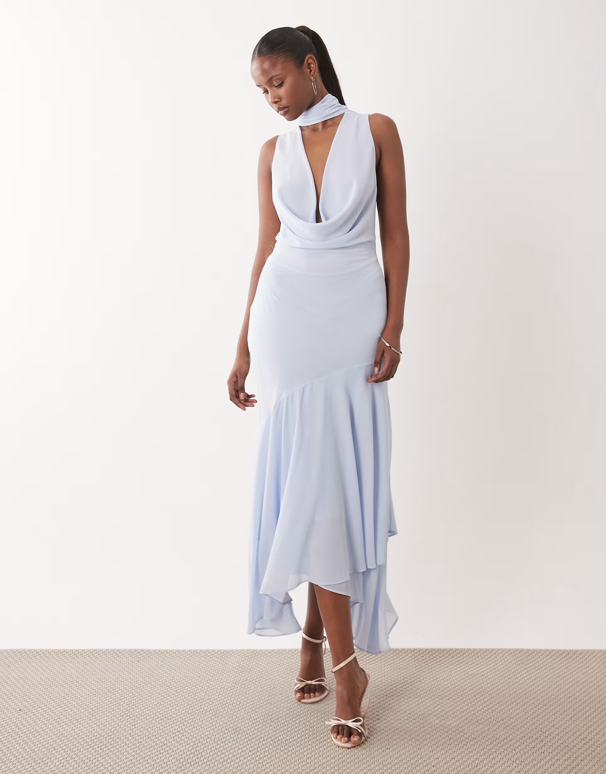 The ASOS TFNC Bridesmaids Cowl Neck Midi Dress in Icy Blue is ideal for evening, party.