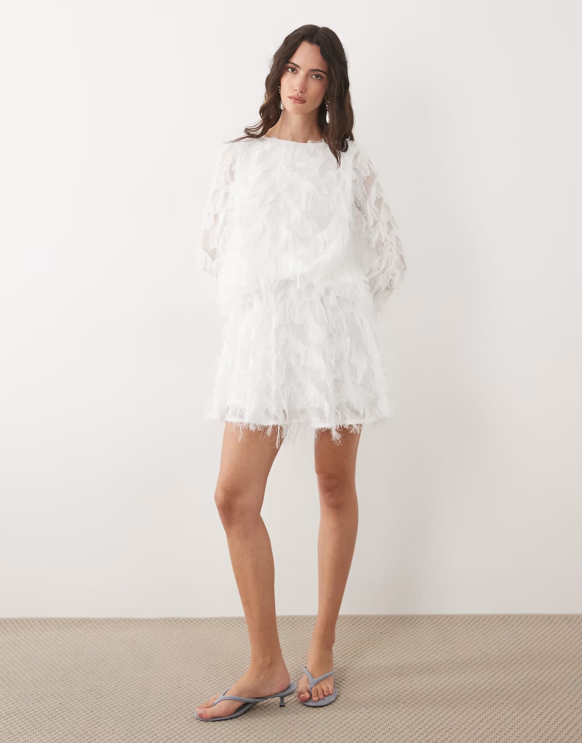 ASOS White Faux Feather Bell Sleeve Mini Dress