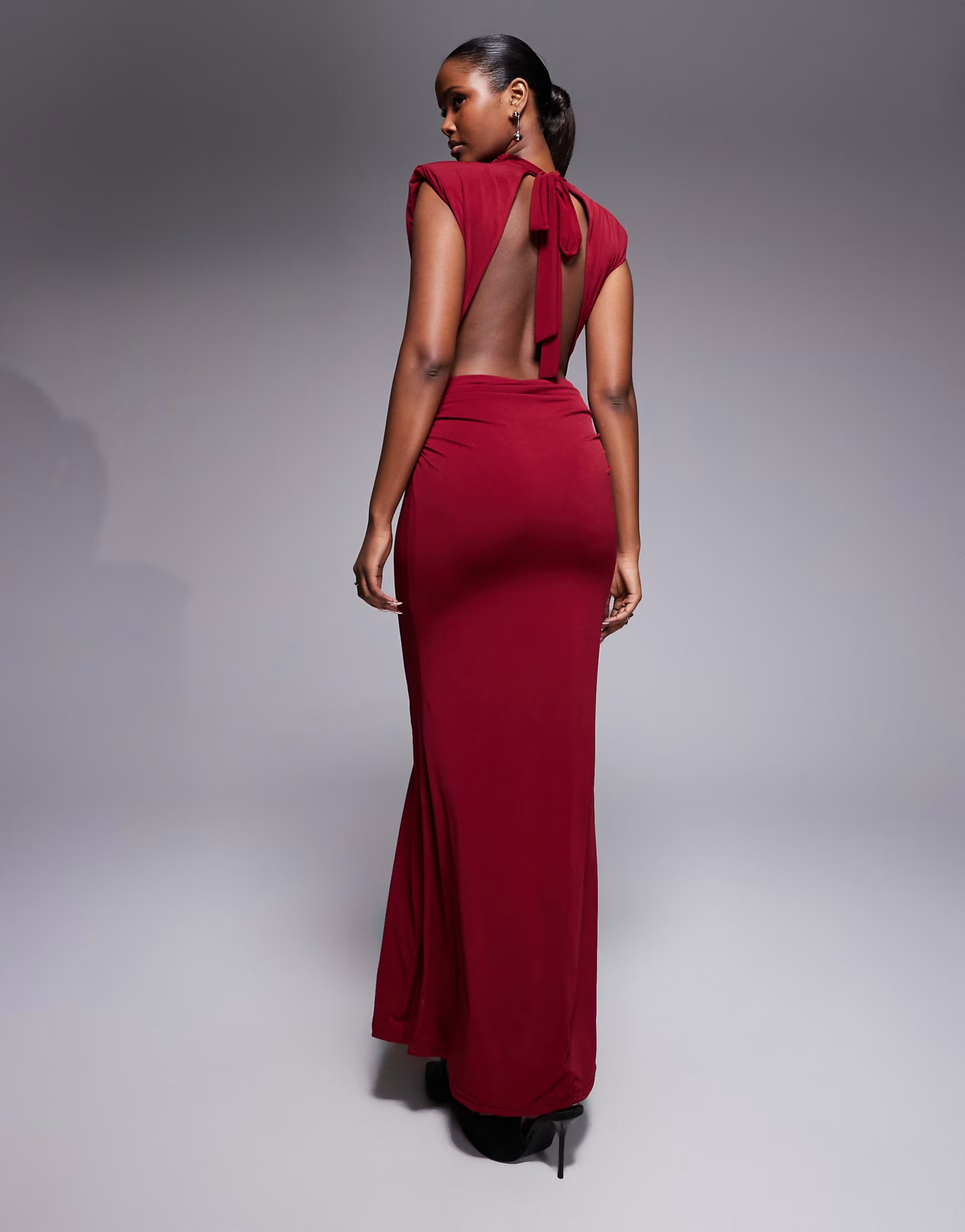 The ASOS Draped High Neck Maxi Dress in Burgundy is ideal for evening, party.