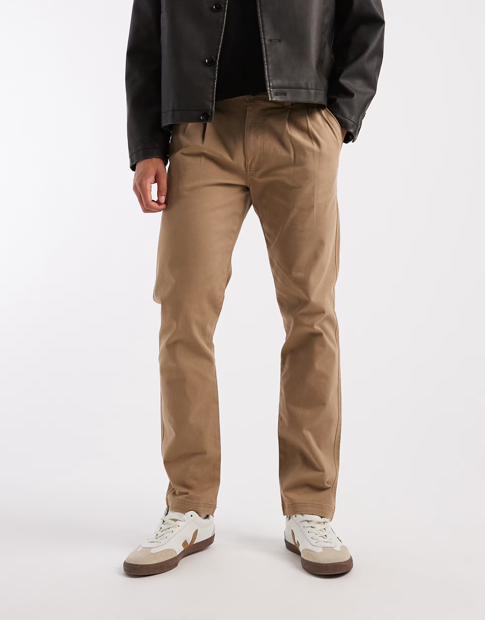 The ASOS Loose Fit Chino Trousers in Dark Stone is ideal for casual, smart-casual.