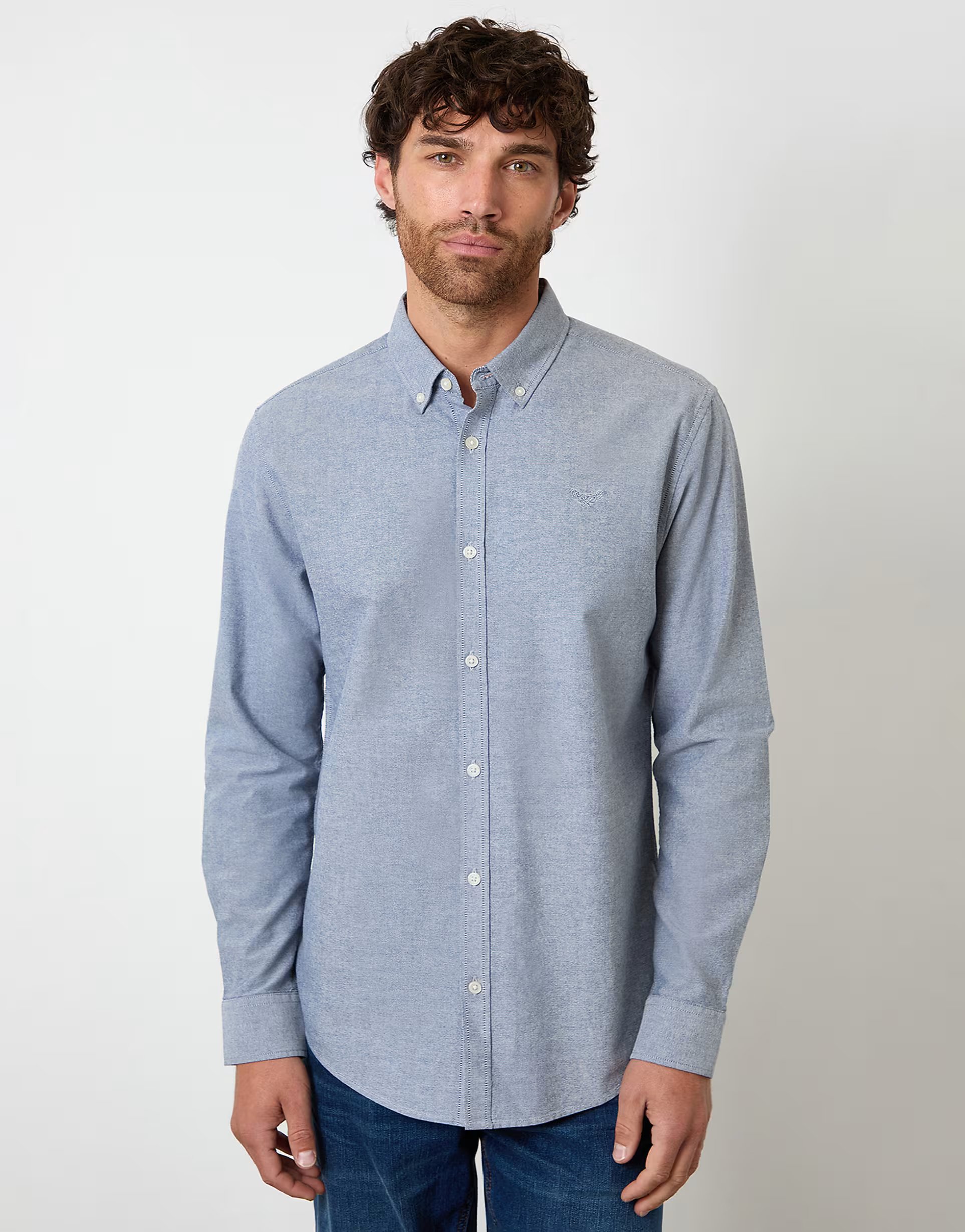 Crafted from Oxford cotton, this long sleeve shirt in blue is perfect for layering over a tee or wearing on its own for a casual day out.
