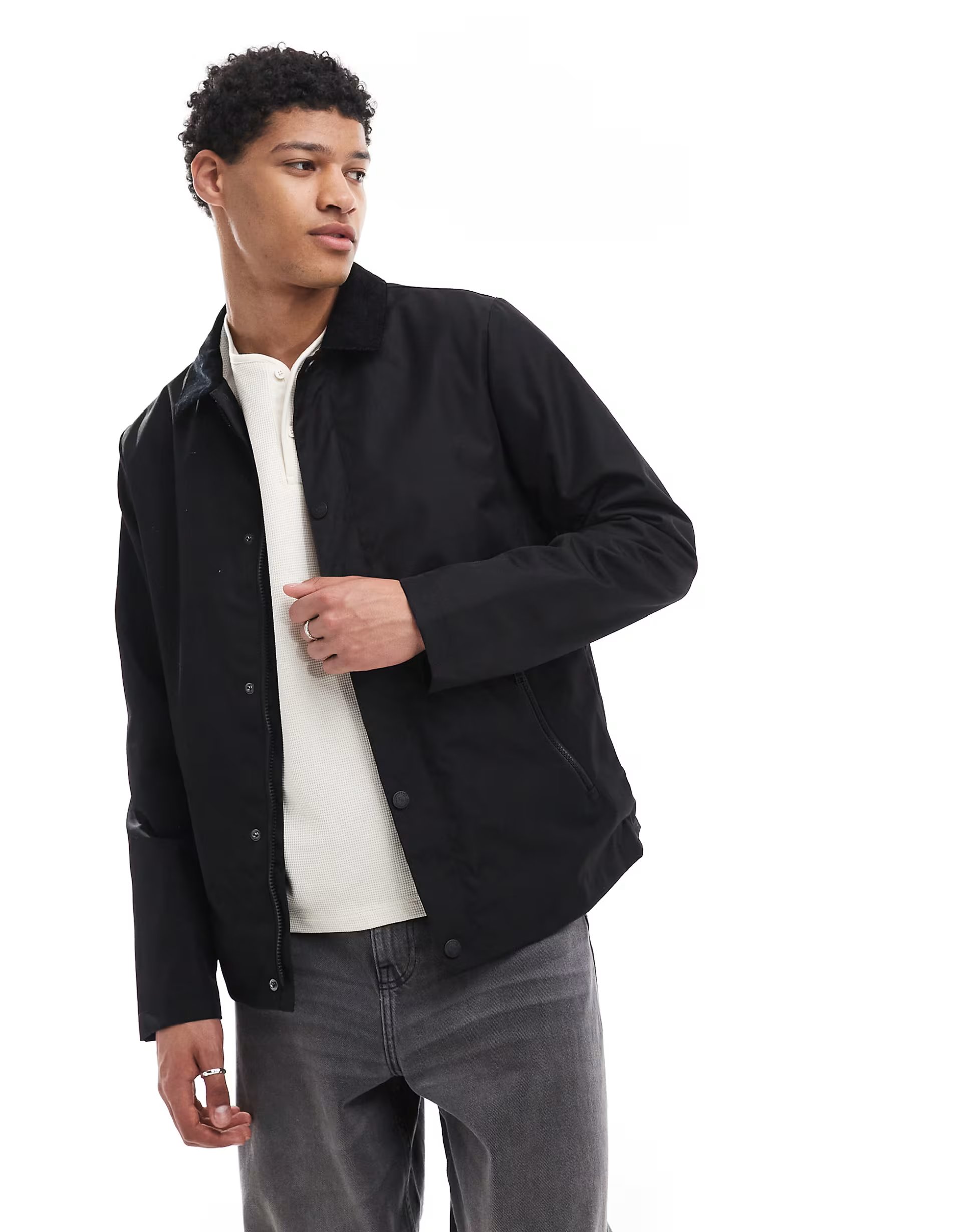 The ASOS Showerproof Corduroy Jacket in Black is ideal for casual, work.