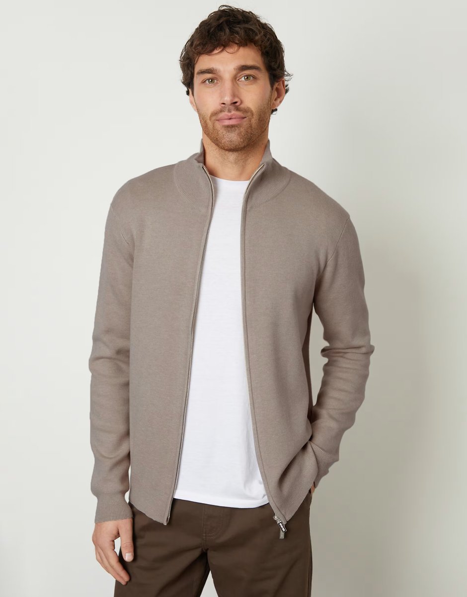 The ASOS Zip-through Funnel Neck Knitted Jumper in Taupe is ideal for casual, smart-casual.