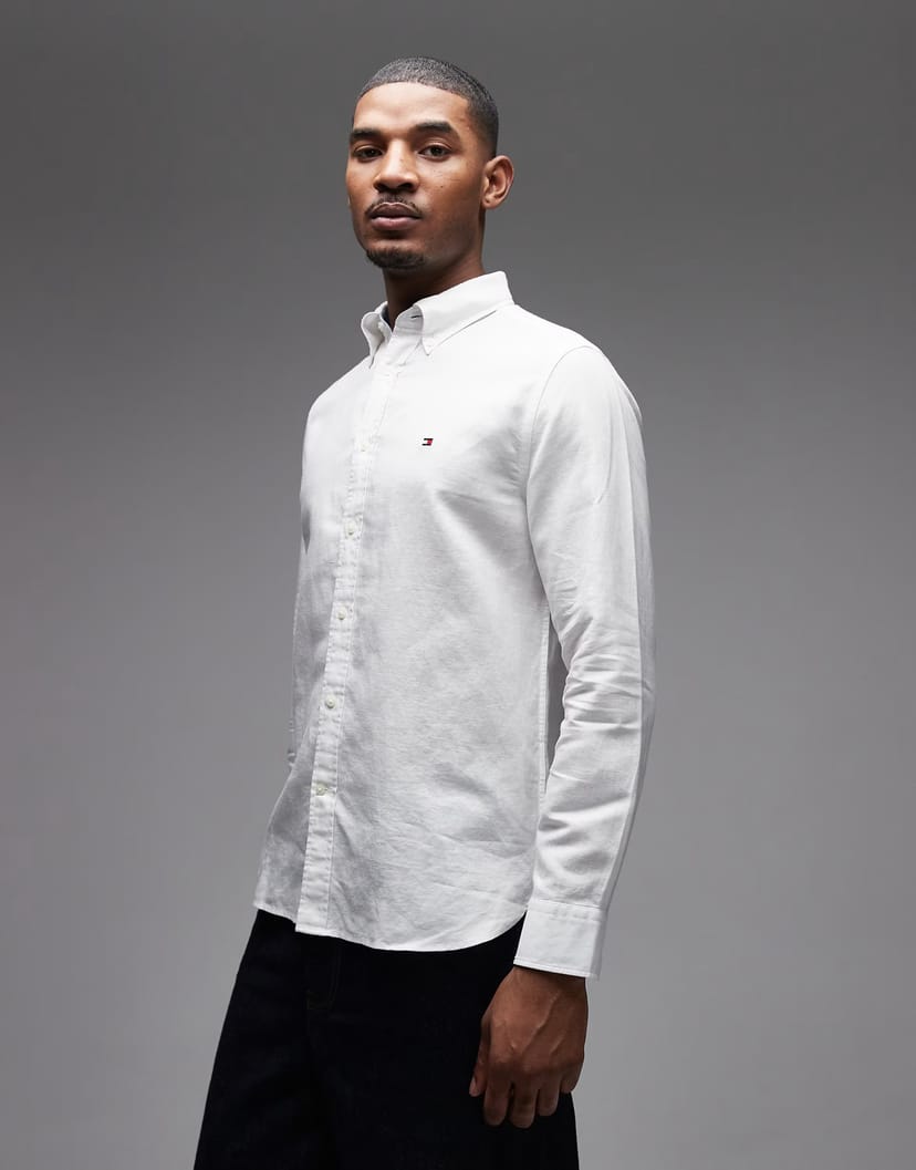 The Tommy Hilfiger White Linen Blend Shirt is ideal for casual, work, smart-casual.