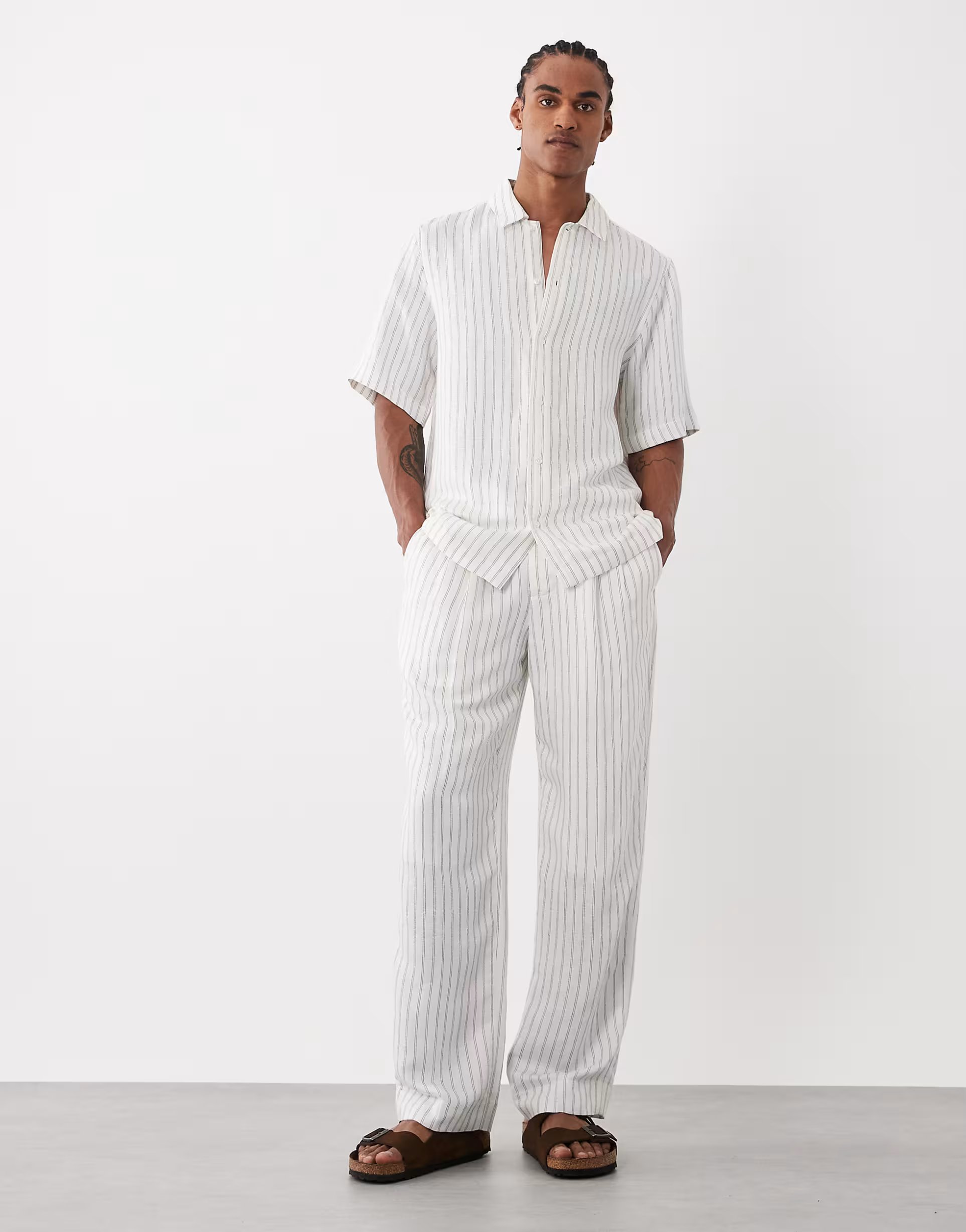 The ASOS Tommy Hilfiger Pinstripe Linen Co-ord in White is made from linen.