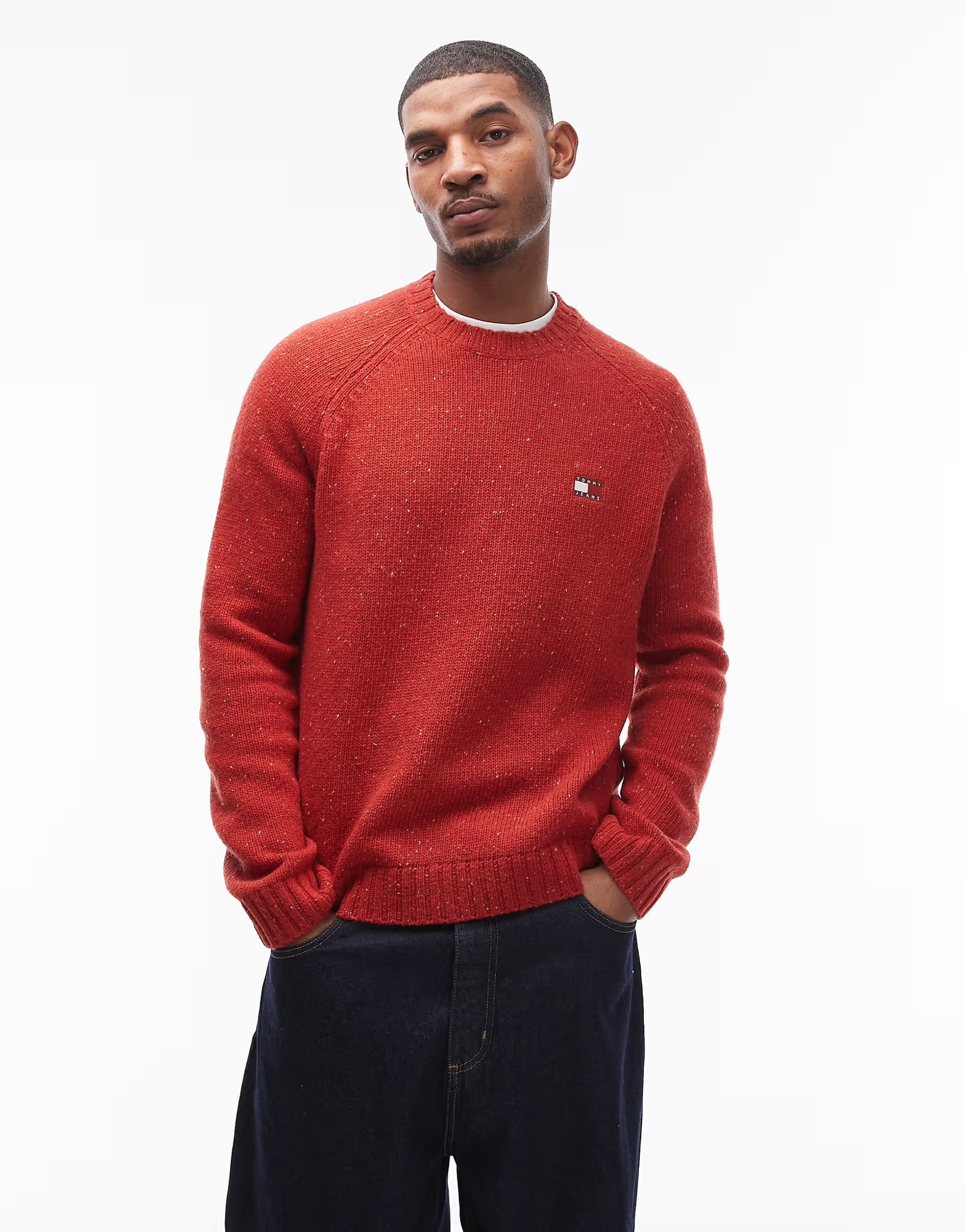 The ASOS Tommy Jeans Speckle Jumper in Red is ideal for casual.