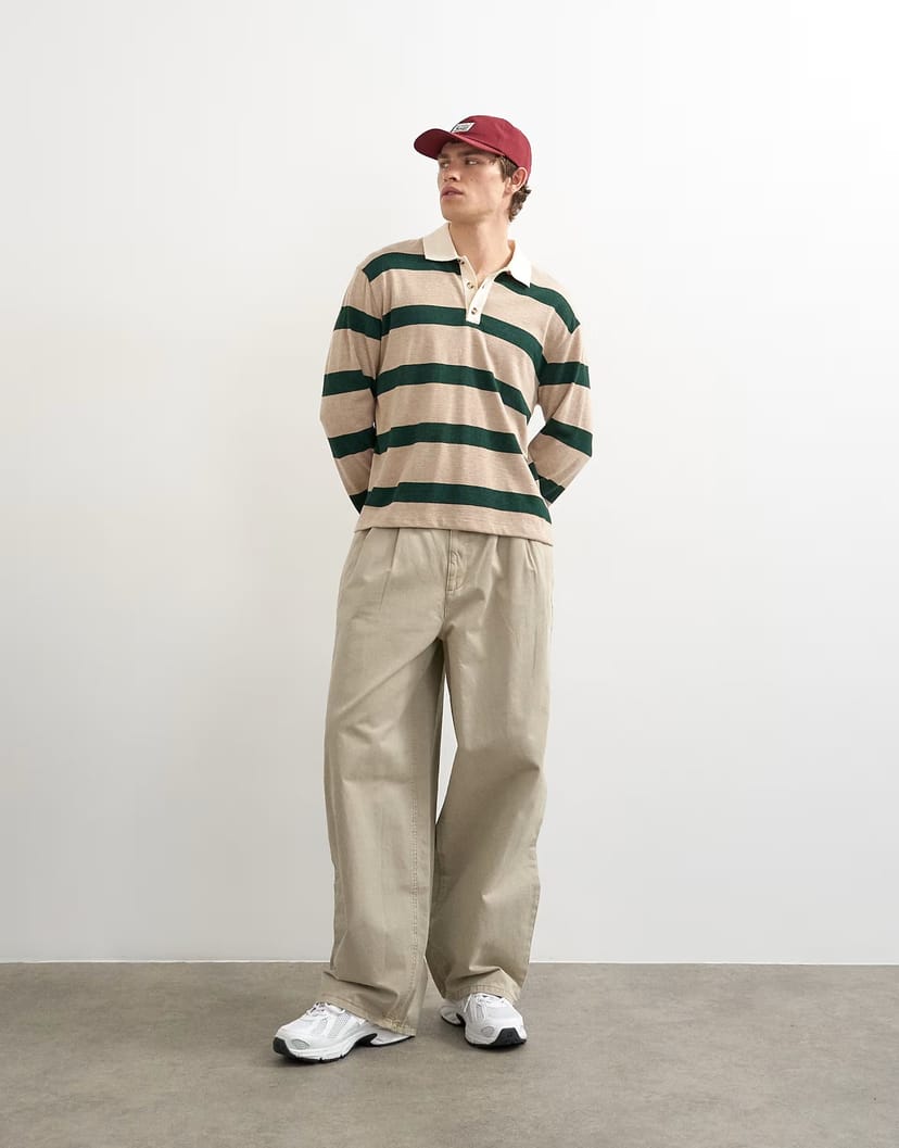 The ASOS Baggy Fit Pleated Trousers in Stone is made from cotton, polyester.