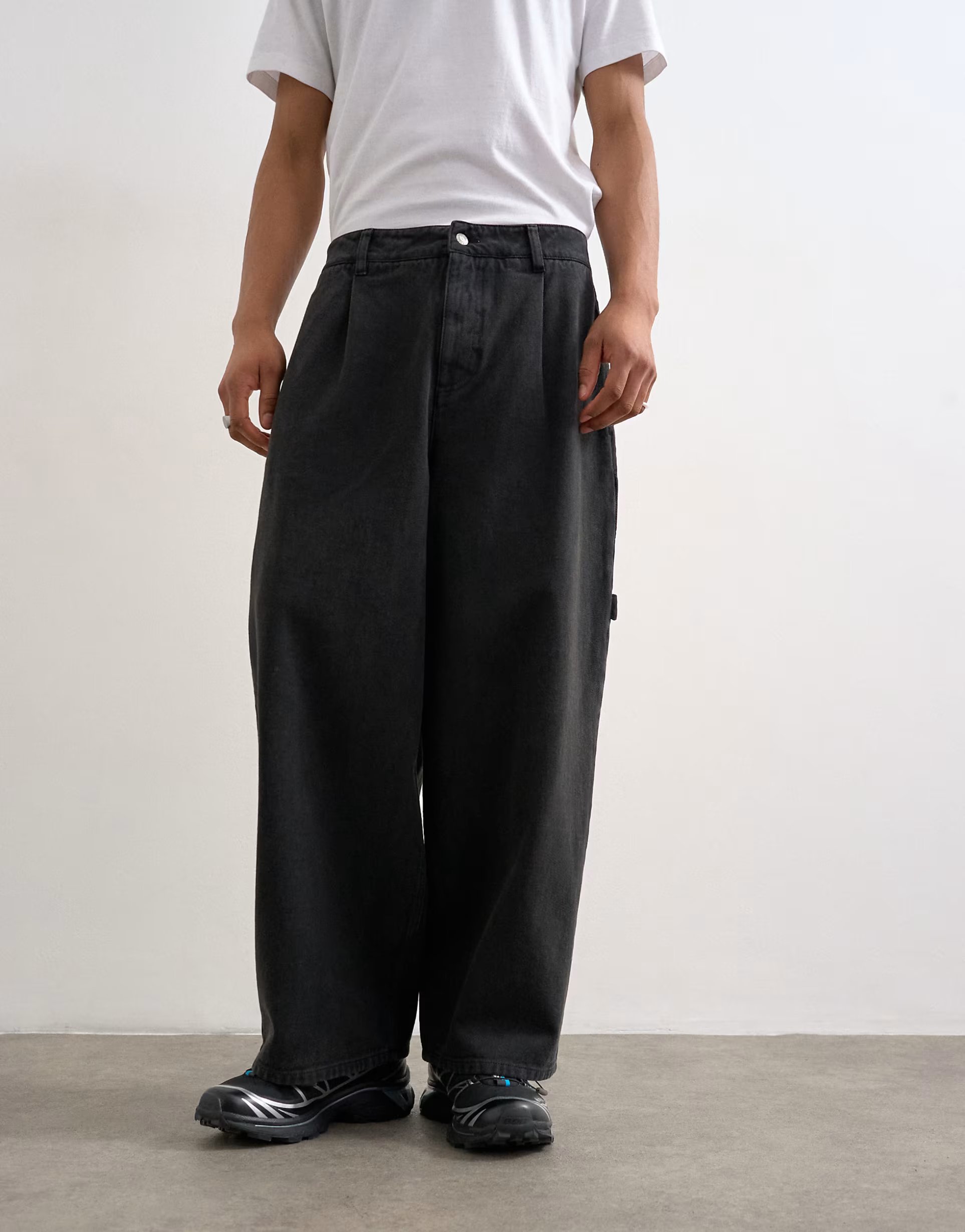 The ASOS Barrel Twill Carpenter Trousers in Black is made from twill.