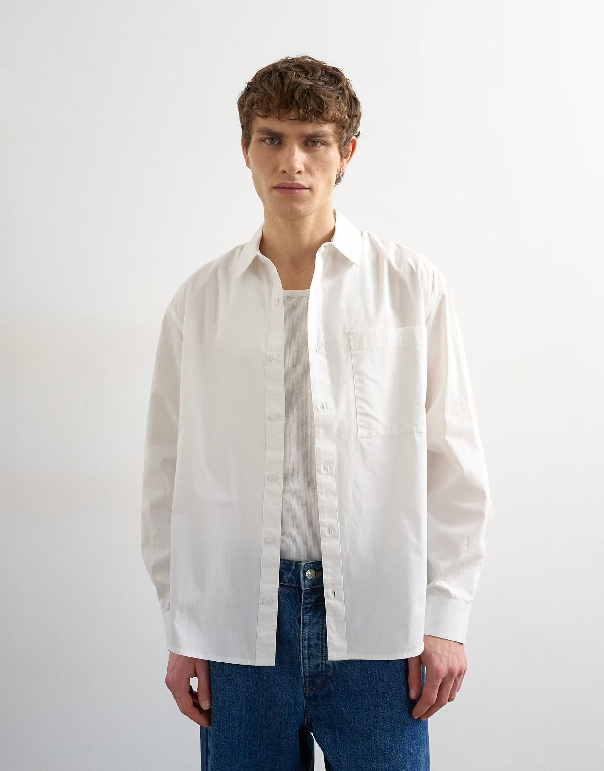 The Topman relaxed fit poplin shirt in white offers a versatile and timeless piece. Featuring a button-up front, long sleeves, and a straight hem, this shirt is perfect for both casual and smart-casual occasions.