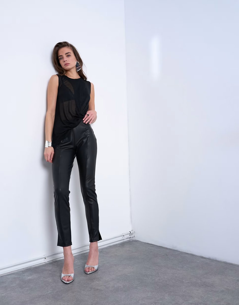 The ASOS Faux Leather Drain Pipe Skinny Trousers in Black is ideal for evening, smart-casual.