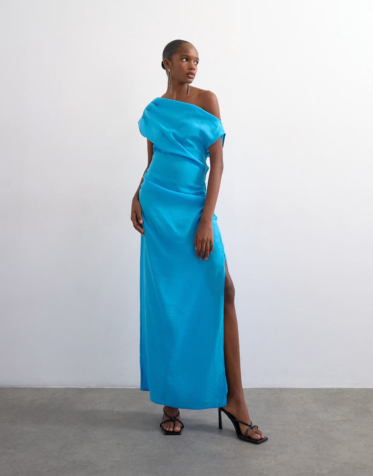 The ASOS Off-Shoulder Midi Dress in Electric Blue is ideal for evening, party.