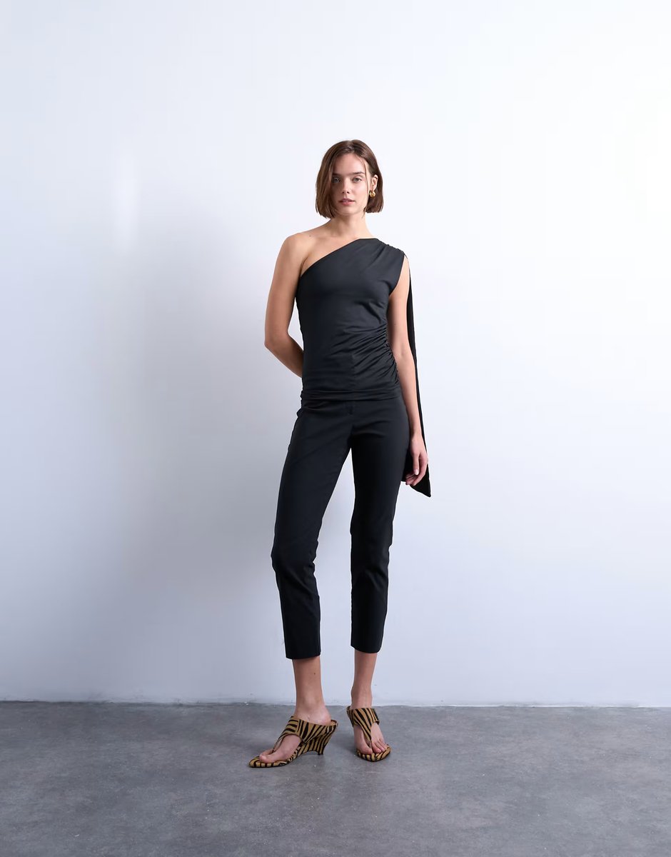The Topshop One Shoulder Cape Detail Top in Black is ideal for evening, party.