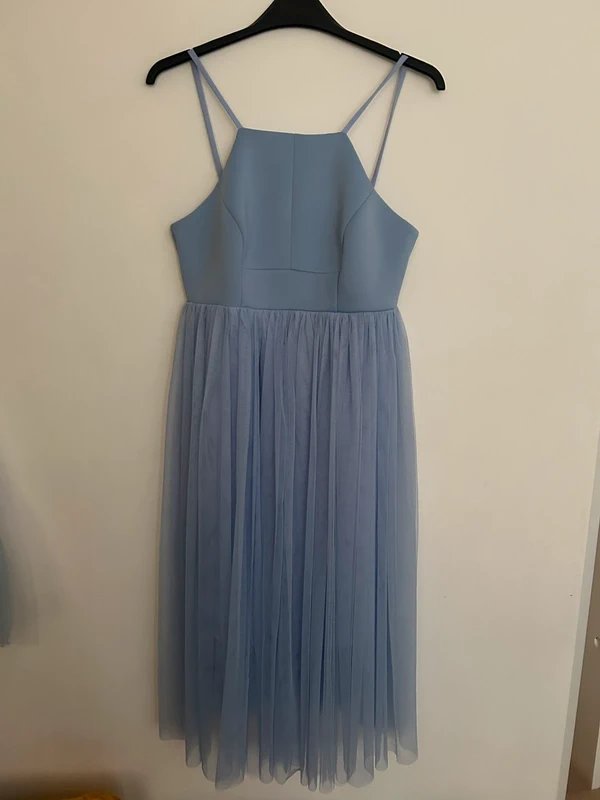 The ASOS Light Blue Tulle Midi Dress is available in sizes M.