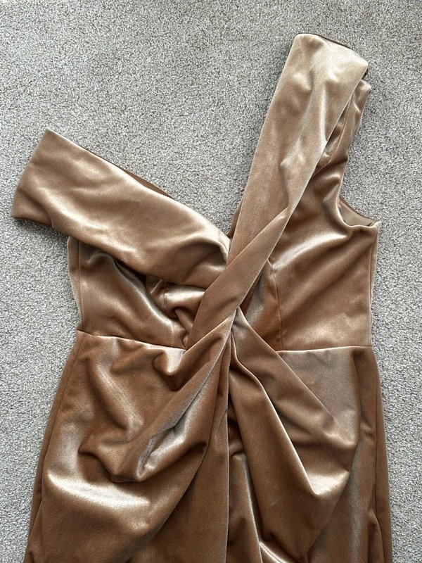The ASOS Gold Velvet Off-One-Shoulder Knee-Length Dress is ideal for evening, party, formal.