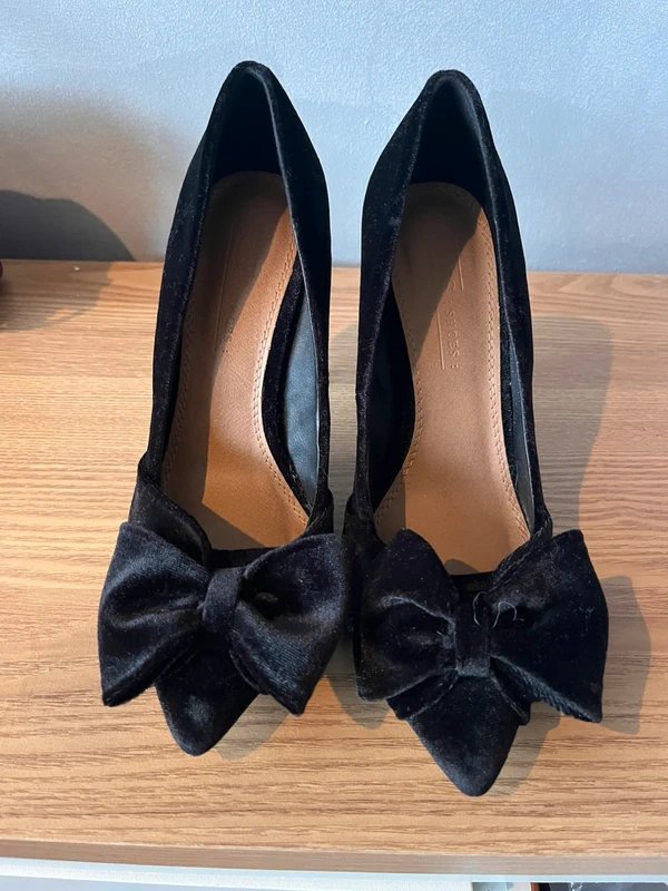 The ASOS Bow Velvet High Heels in Black is available in sizes XXXL, XXL, XL, XS, L, M, S.