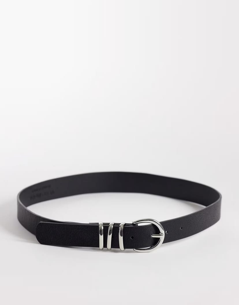 Stylish Vero Moda faux leather belt in black with a silver buckle and three silver rings. Perfect for adding a touch of elegance to any outfit.