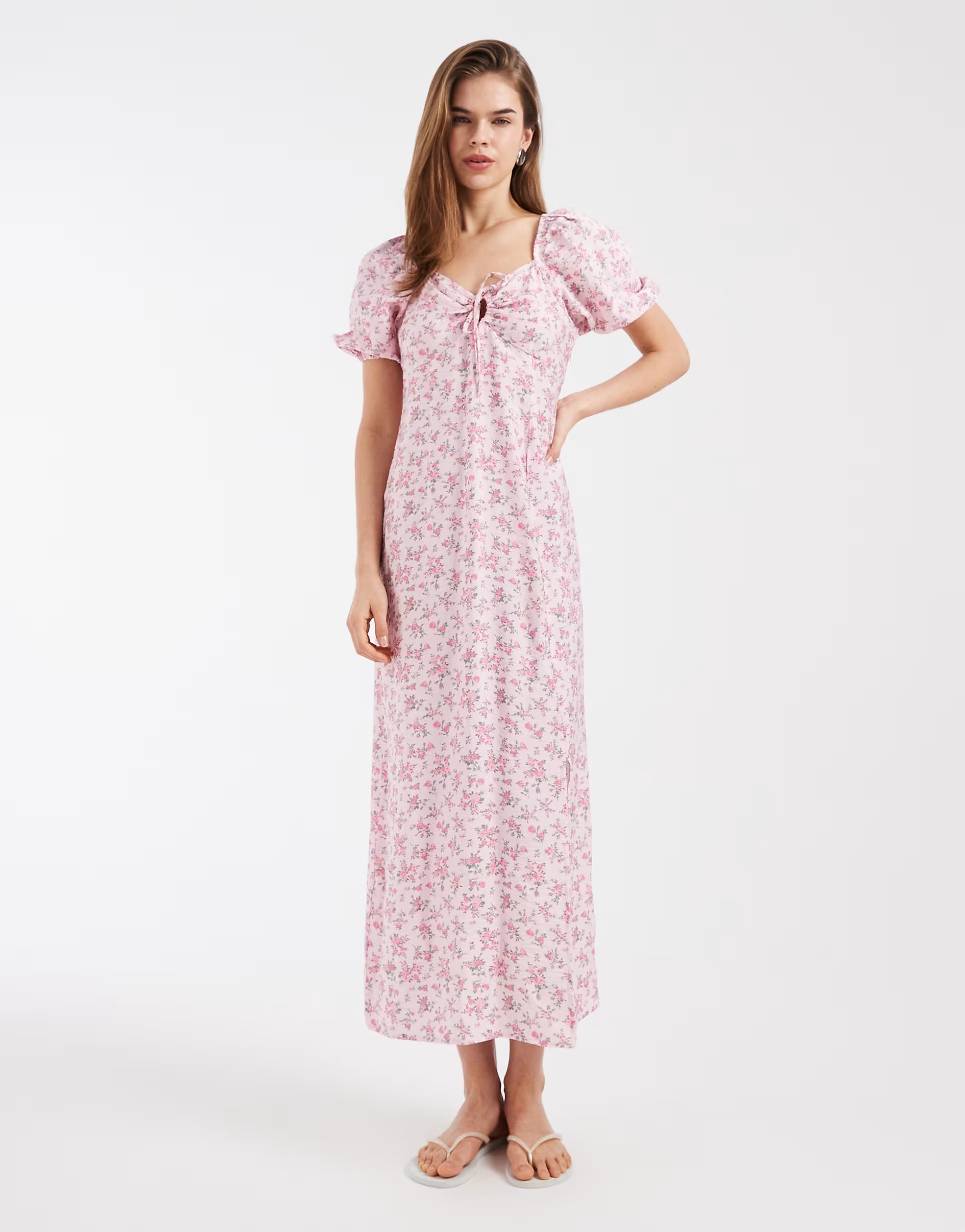 The ASOS Floral Puff Sleeve Maxi Dress in Pink is ideal for evening, date-night.