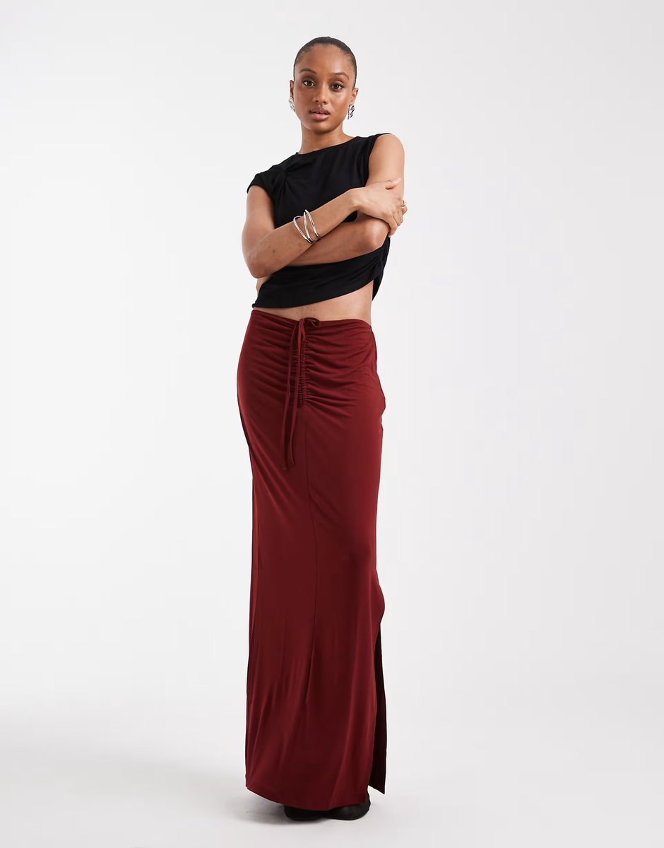 The ASOS Vero Moda Tall Burgundy Ruched Front Maxi Skirt is ideal for evening, casual.