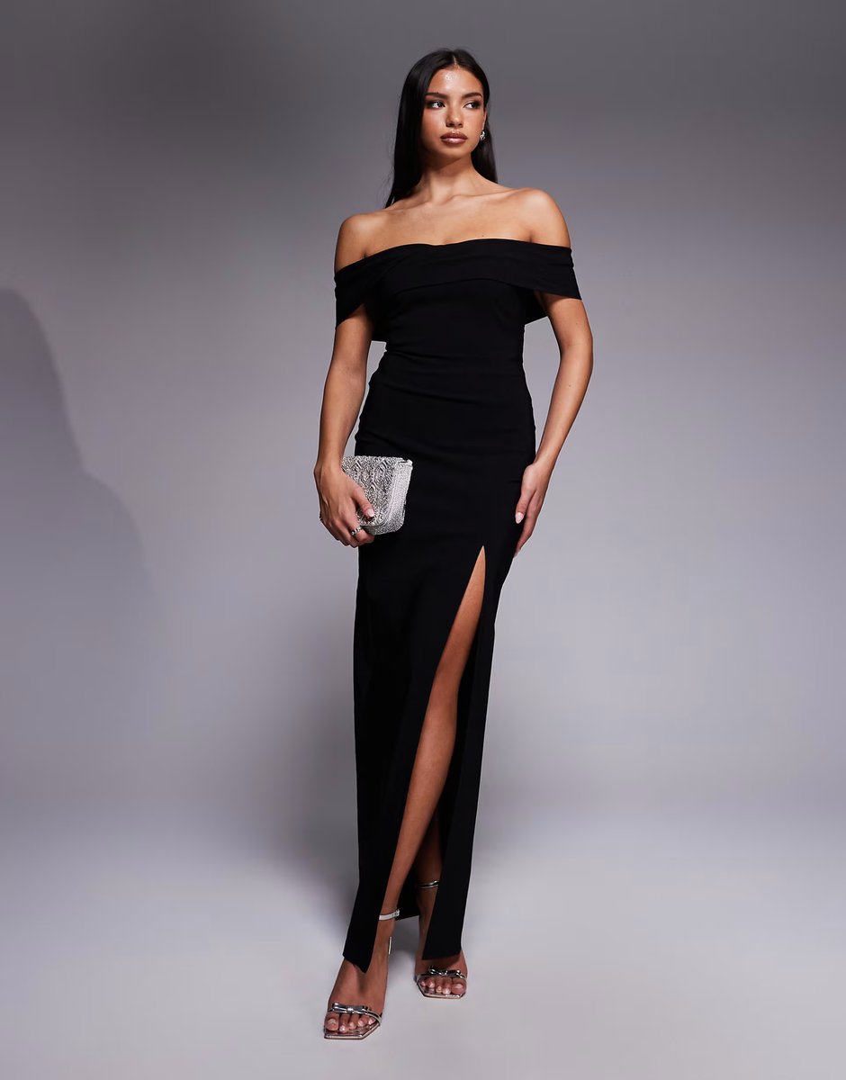 The Vesper Black Bengeline Off Shoulder Maxi Dress is ideal for evening, party, wedding-guest.