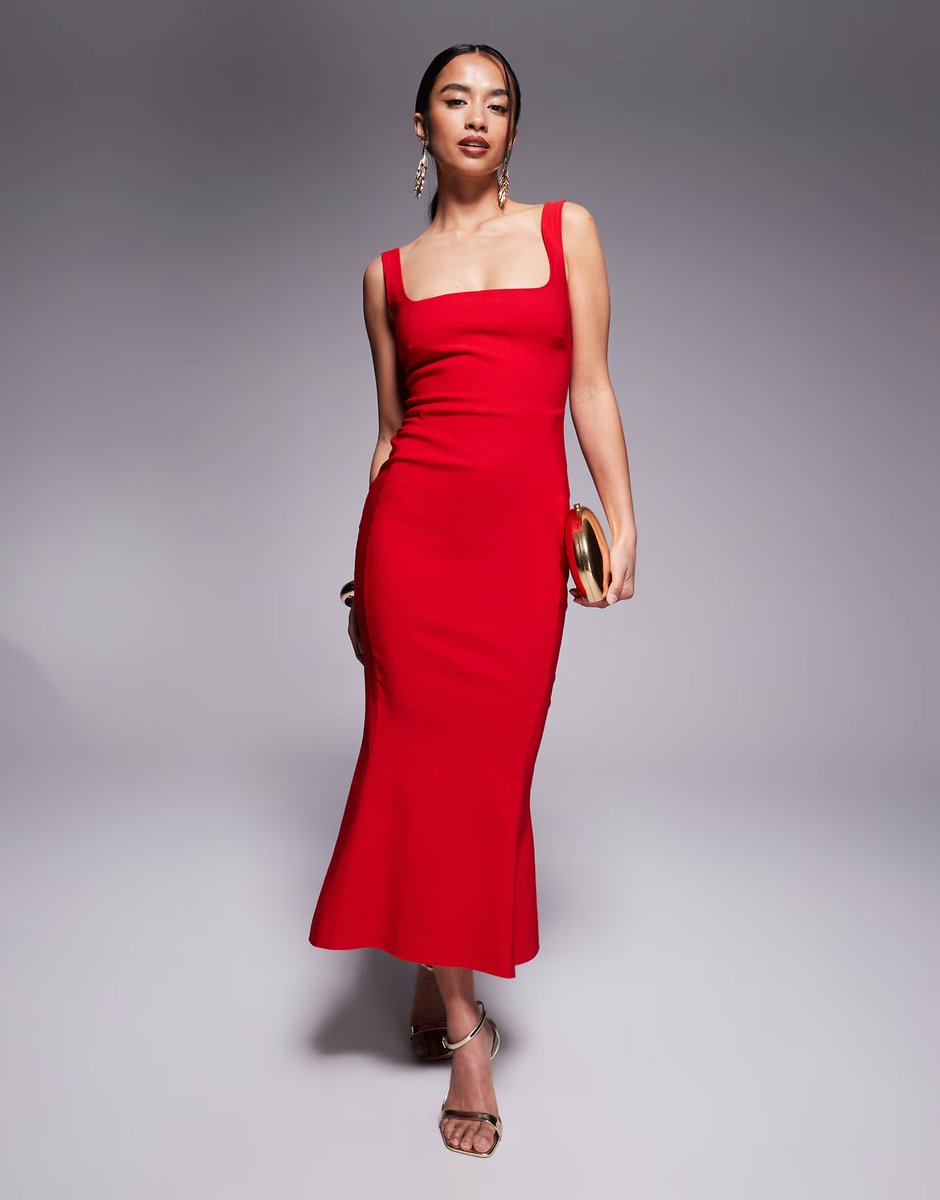 The ASOS Vesper Petite Red Sleeveless Midi Dress is ideal for party, evening, date-night.