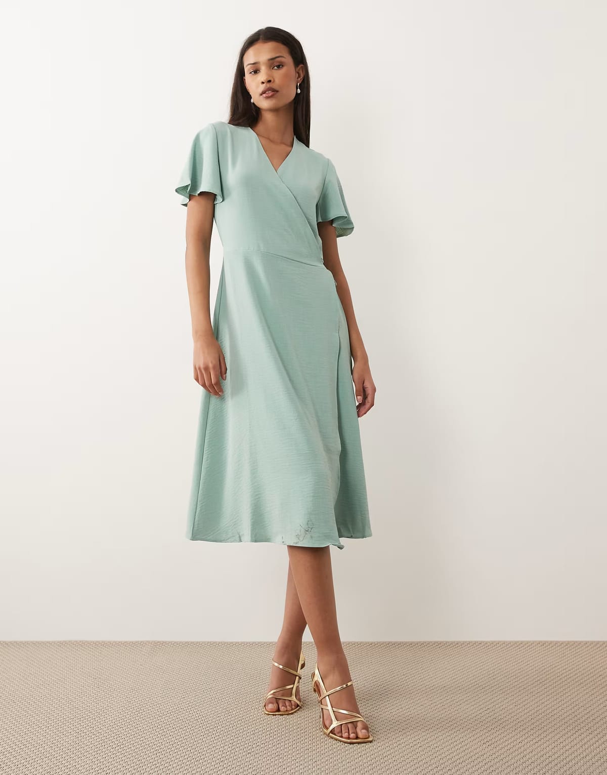 The ASOS Sage Green Wrap Front Midi Dress is ideal for casual, evening, party.