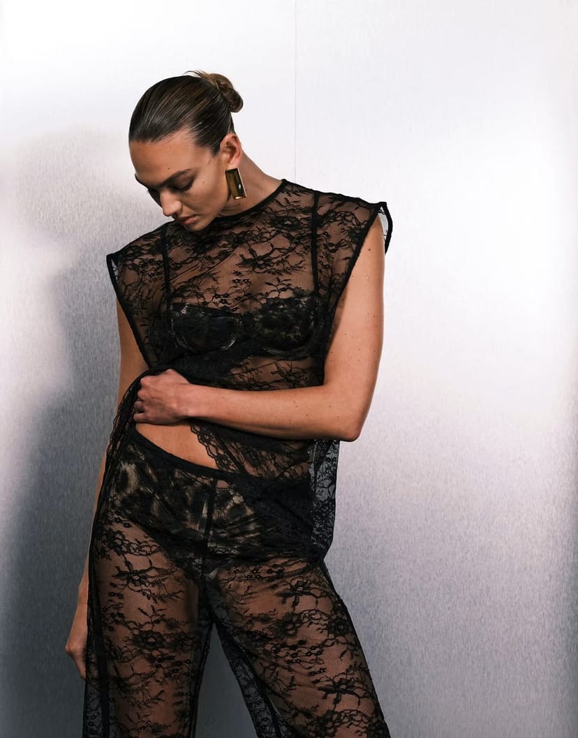 The ASOS VRG GRL Short Sleeve Lace Mesh Top in Black is ideal for evening, party.
