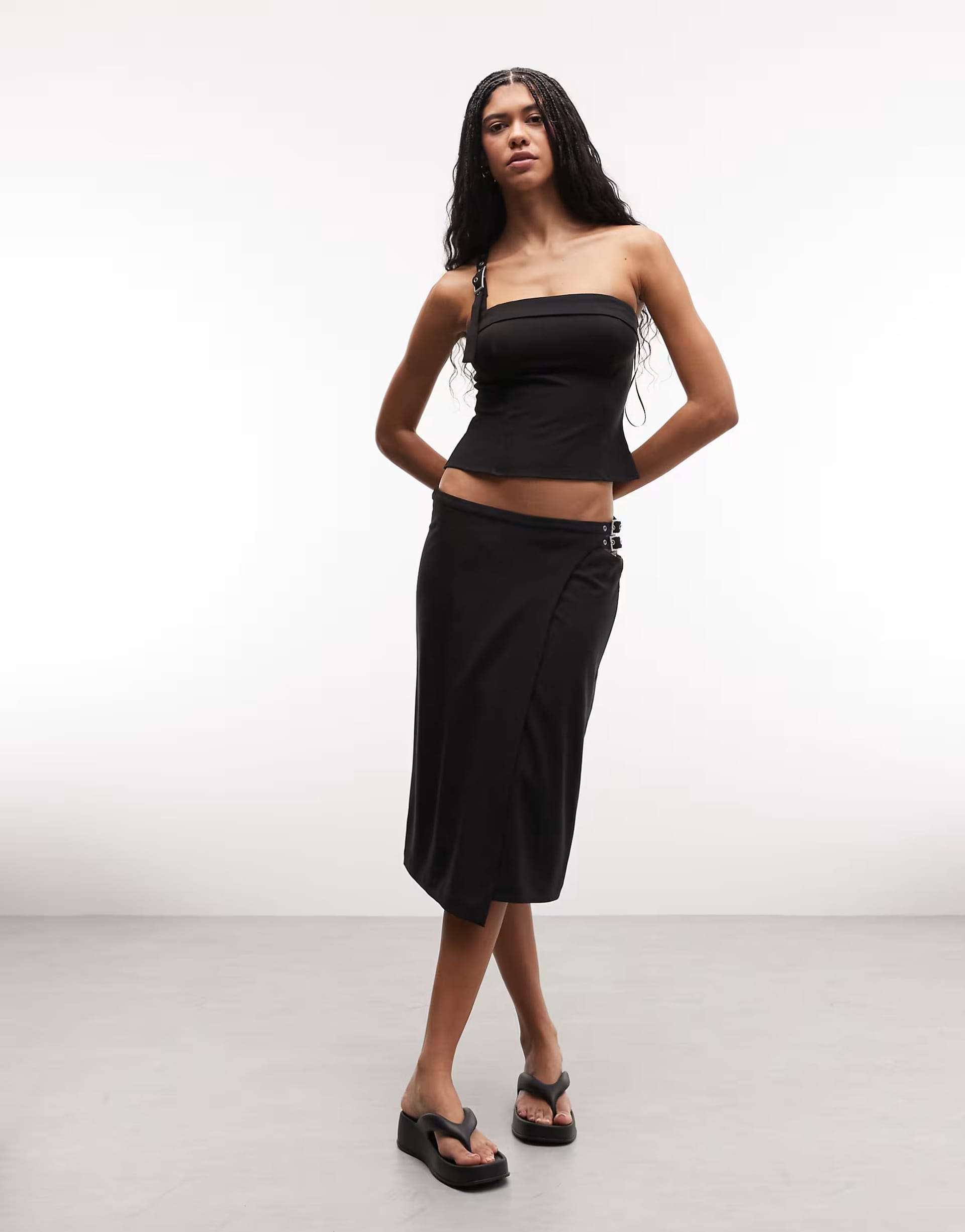 “Pair with black pointed-toe ankle boots and a black leather crossbody bag for a sleek, urban look.”