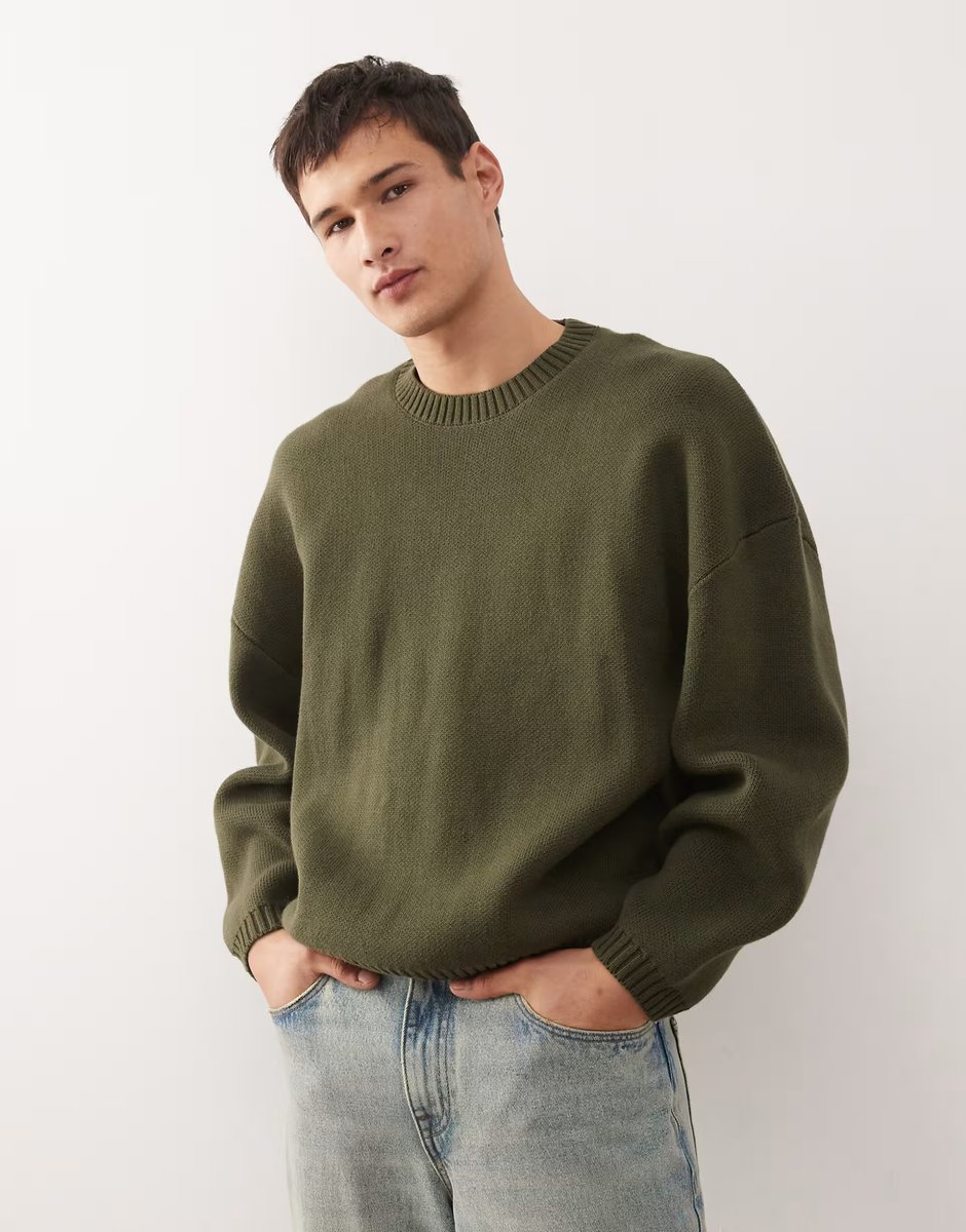 The Weekday Khaki Oversized Jumper is ideal for casual, smart-casual.