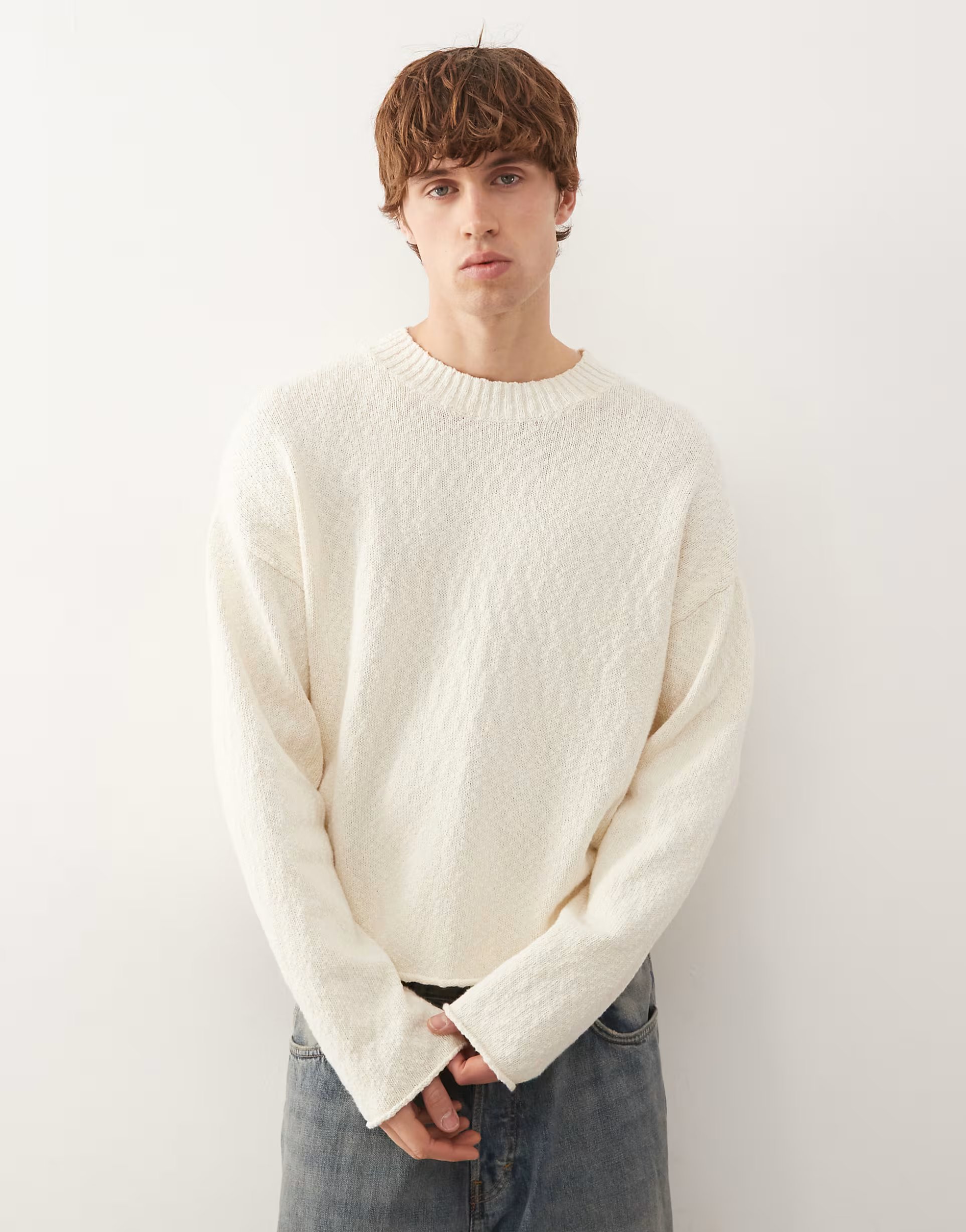 The ASOS Weekday Relaxed Knit Jumper in White is available in sizes XXXL, XXL, XL, XS, L, M, S.