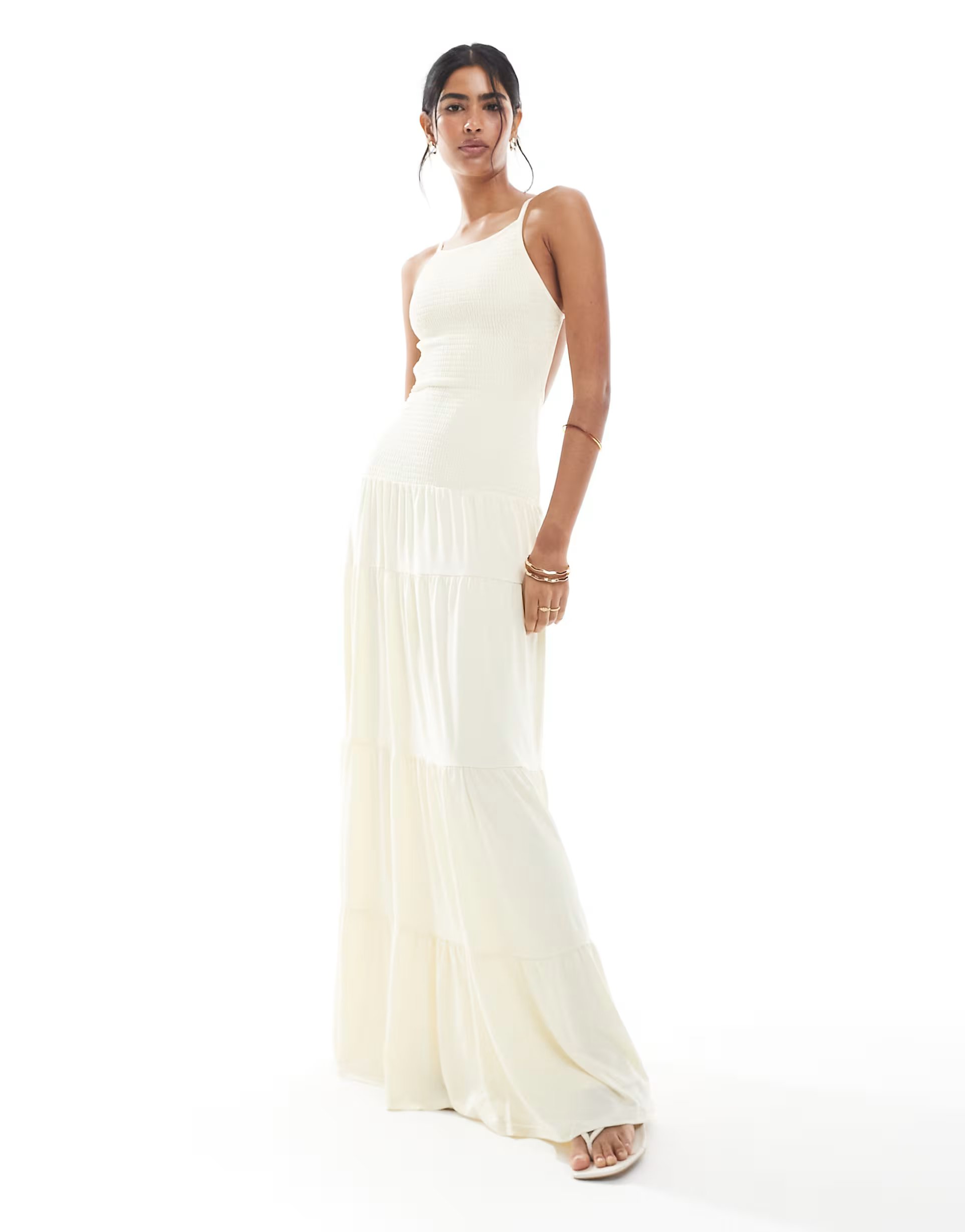 The ASOS WeWoreWhat Smocked Maxi Dress in Ivory is ideal for evening, party.