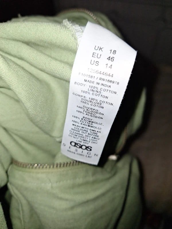 The ASOS Mint Cotton Wide Leg Playsuit Size 18 is made from cotton.
