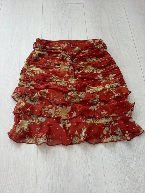The ASOS Burgundy Floral Print Petite Mini Skirt - Size 2 is made from polyester, spandex.