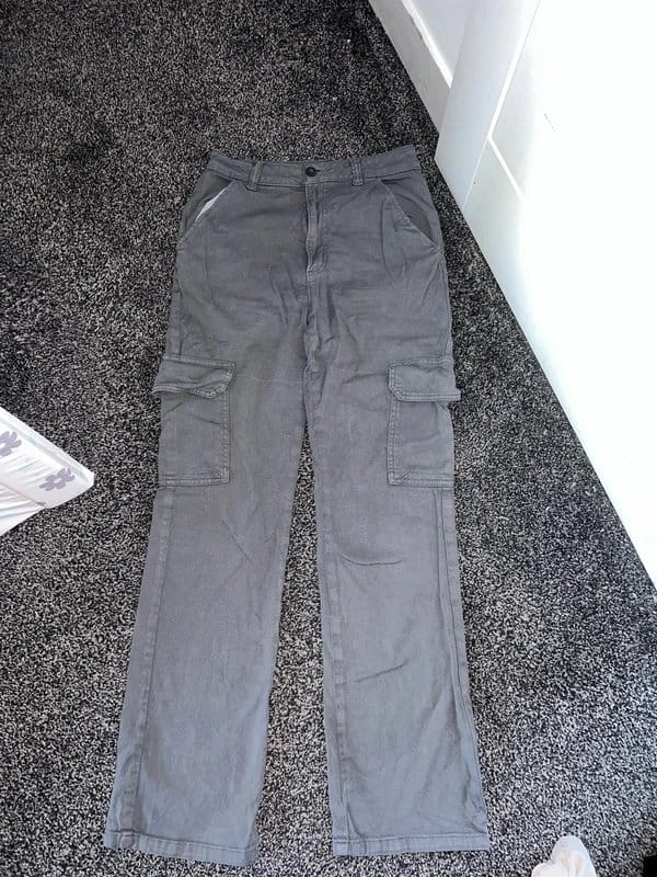 The ASOS Grey Cargo Pants for Women is available in sizes S.