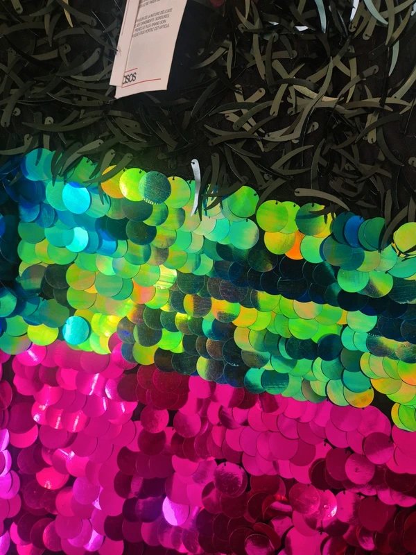 This embellished sequined aline skirt from ASOS features a larger side of UK 4, making it more like a UK 6. The vibrant multi-colored sequins add a dazzling touch, perfect for evening events or a night out.