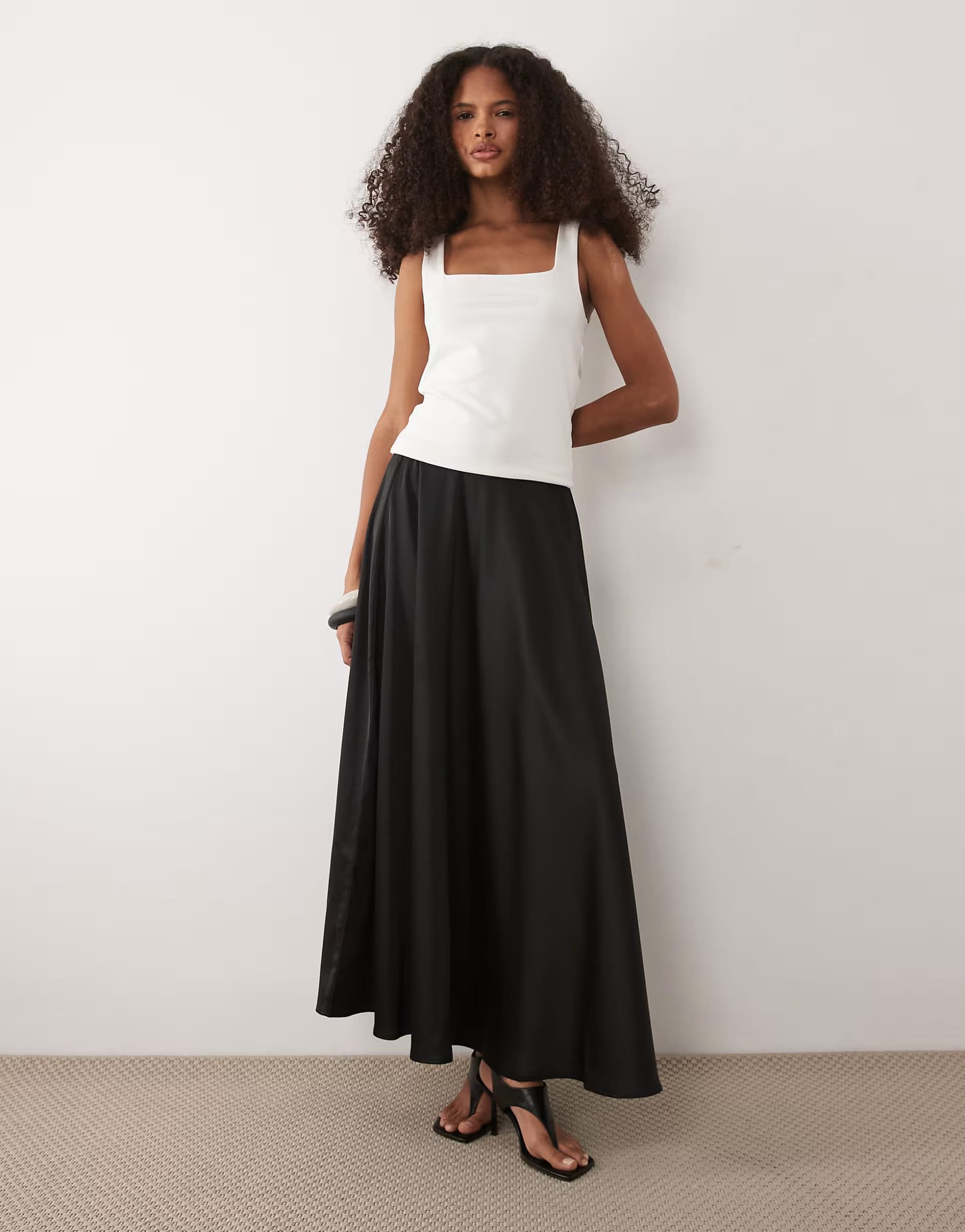 “Pair with a white sleeveless top and black strappy heels for a chic evening look.”