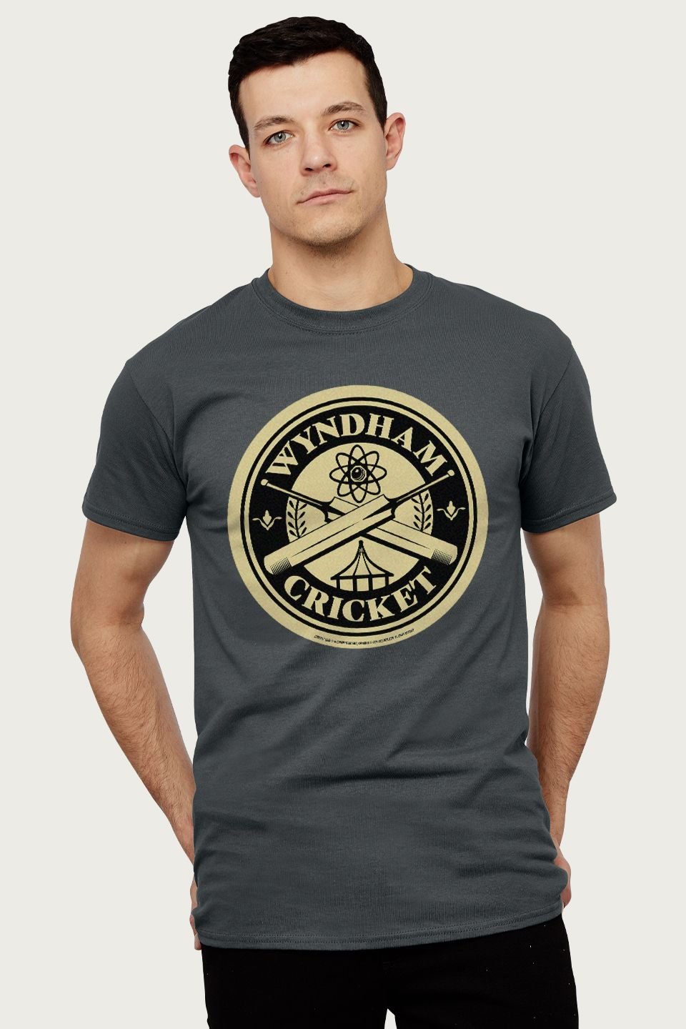 The Atomfall Men's Wyndham Cricket T-Shirt in Charcoal is available in sizes 2XL, L, M, S, XL.