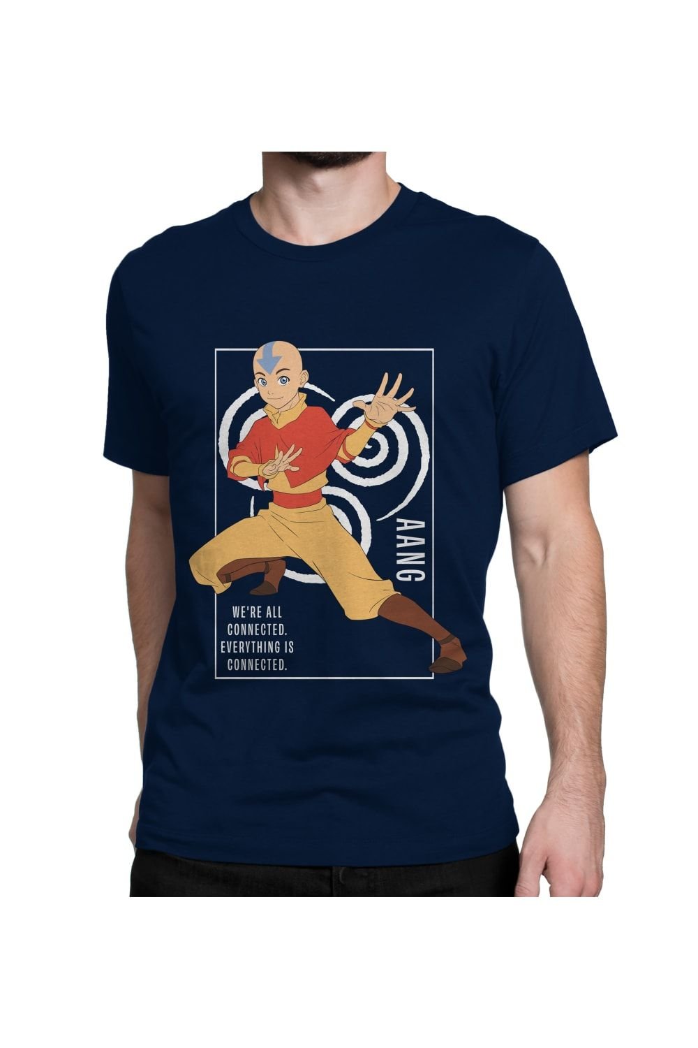 Playful men's T-shirt inspired by Avatar: The Last Airbender, featuring a dynamic depiction of Aang and the iconic Airbender symbol. The navy backdrop adds a touch of nostalgia, perfect for fans of the series.