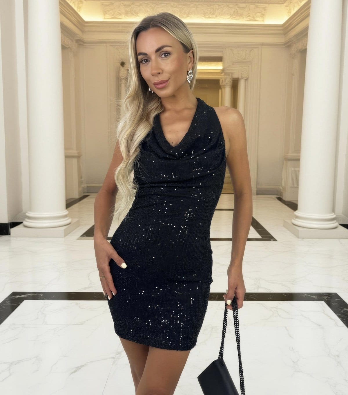 The AX Paris Black Sequin Cowl Neck Mini Dress is ideal for evening, date-night, party.